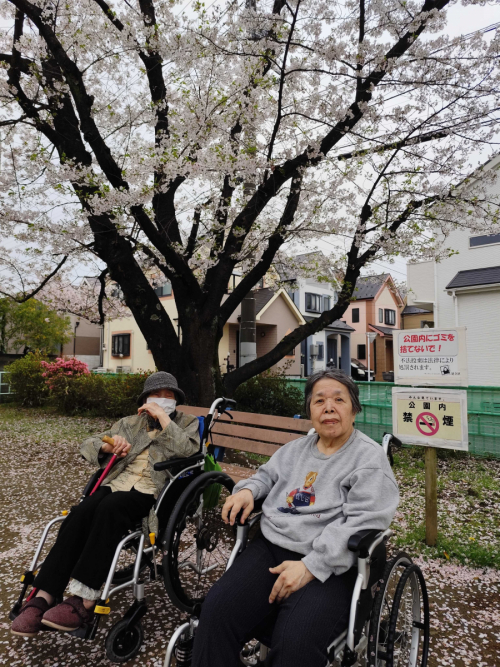 暖かな日差しの中、ベランダで日光浴を行いました。色とりどりのお花に囲まれながら、皆様で楽しくお話しされ、笑顔あふれる時間となりました。「気持ちいいね」「お花きれいだね」と会話も弾み、和やかな雰囲気に包まれていました。