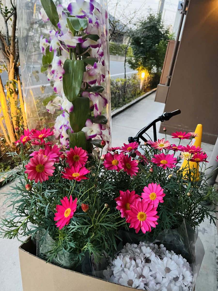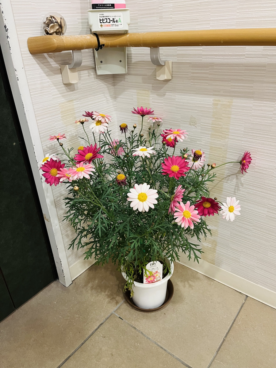 入口とユニット内にお花を買って飾りました(^_-)-☆