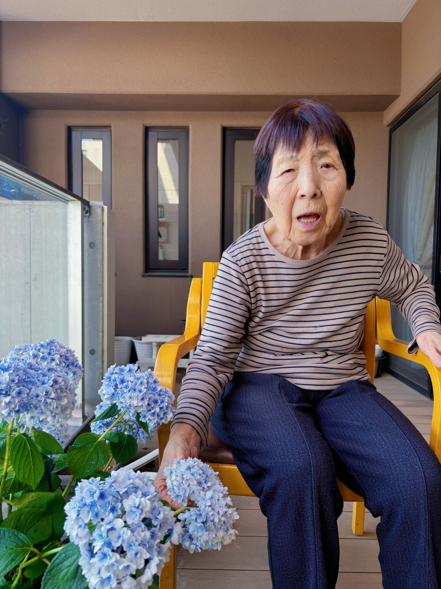 初夏の紫陽花と一緒にリラックス