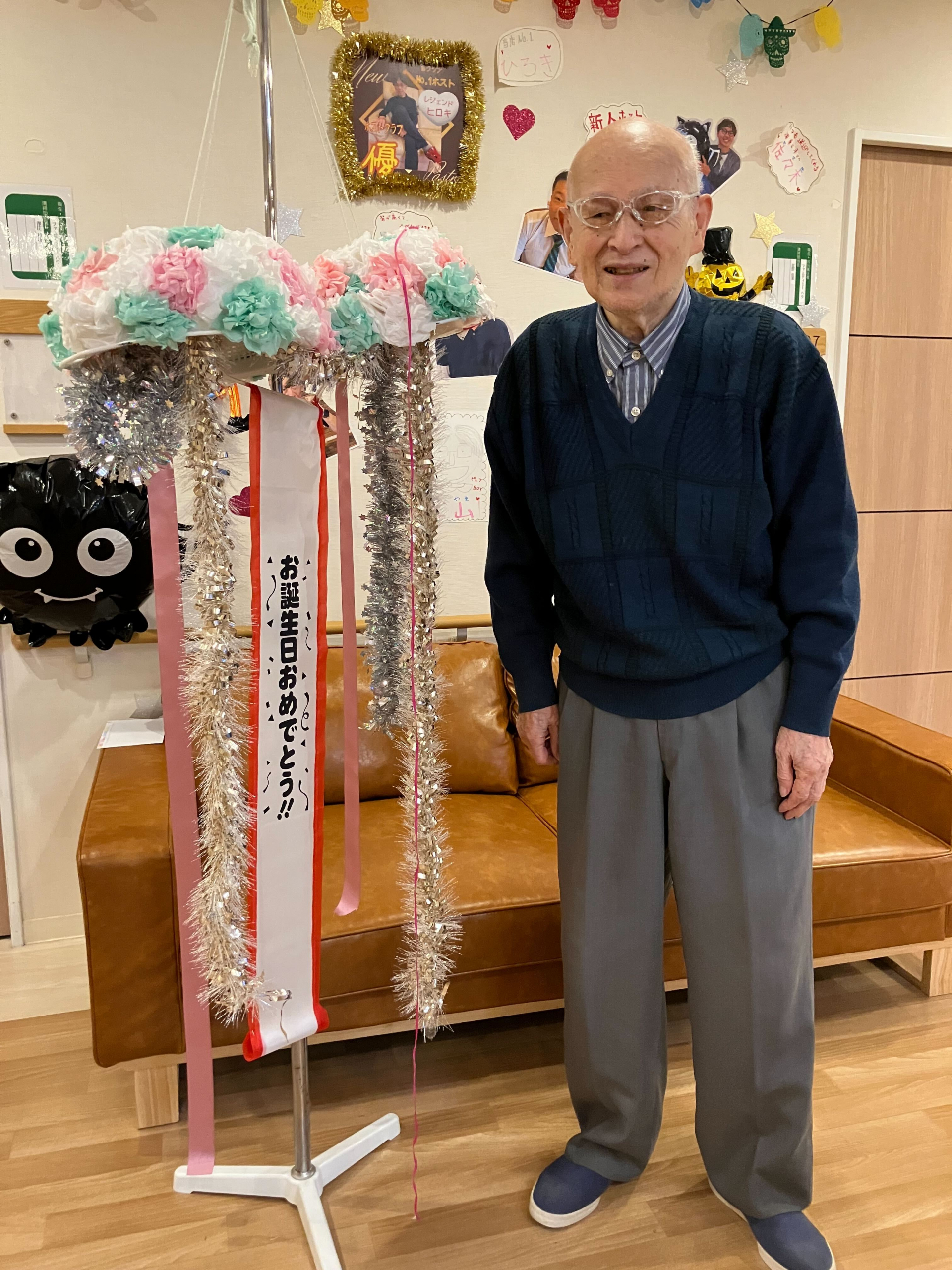 先日、ご利用者様のお誕生日でしたので、くす玉を割ってお祝いをさせていただいました。
