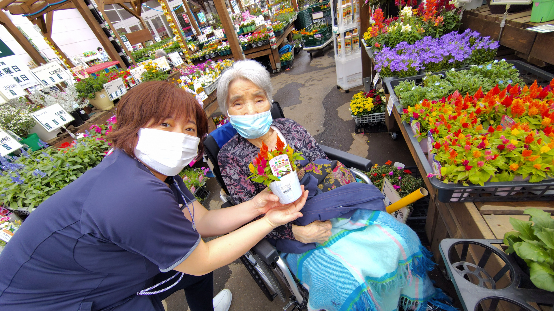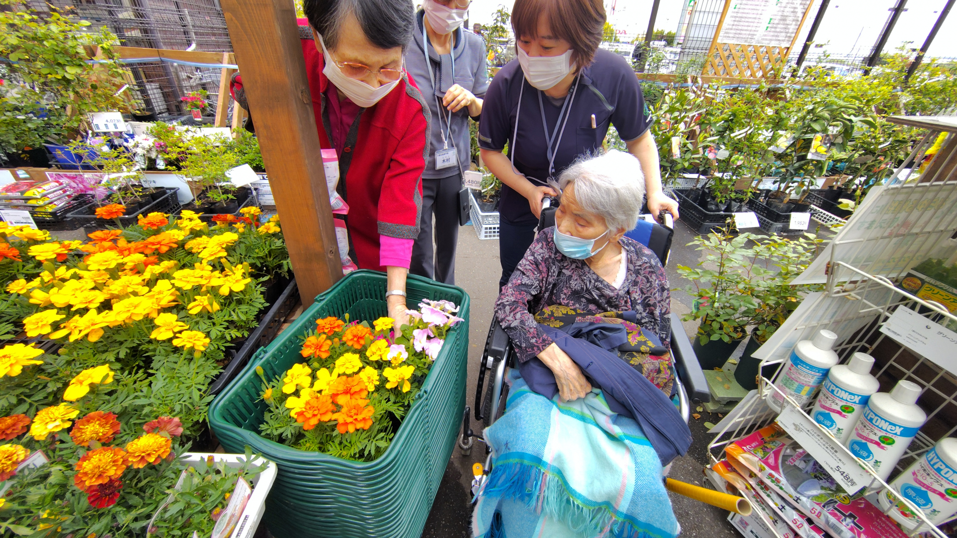 今年度も始まりました園芸クラブ!今年はもっとたくさんのご入居者様と園芸を楽しみたいと、苗を買いに行くところからご入居者様も一緒に!