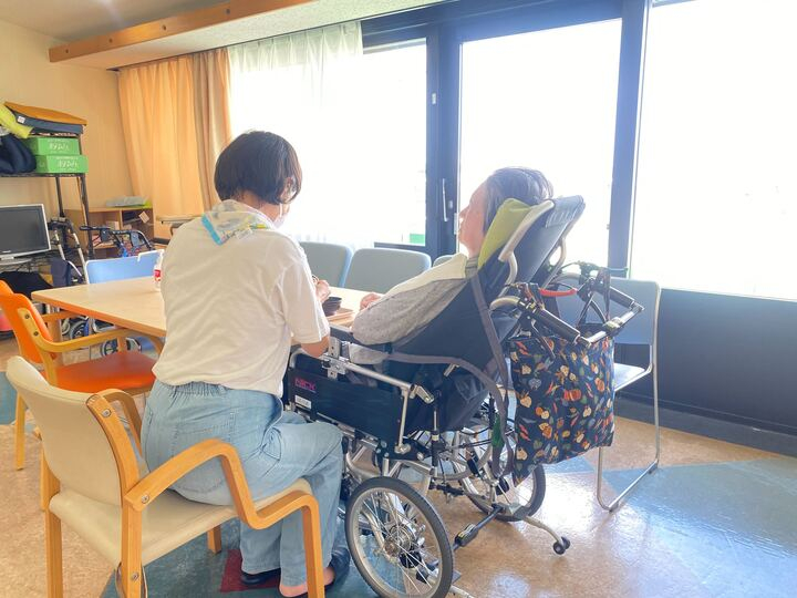 先日ご家族様がお昼にご面会に来てくださりお食事の手伝いをしてくださいました。