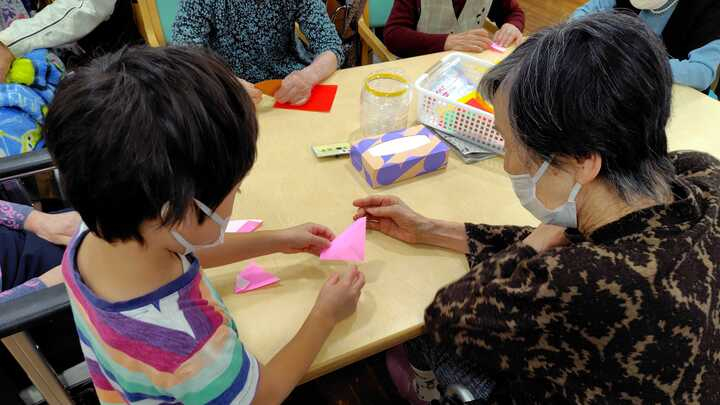 元気いっぱいの園児が遊びに来てくれると自ずとご入所者様も明るい笑顔になります!
