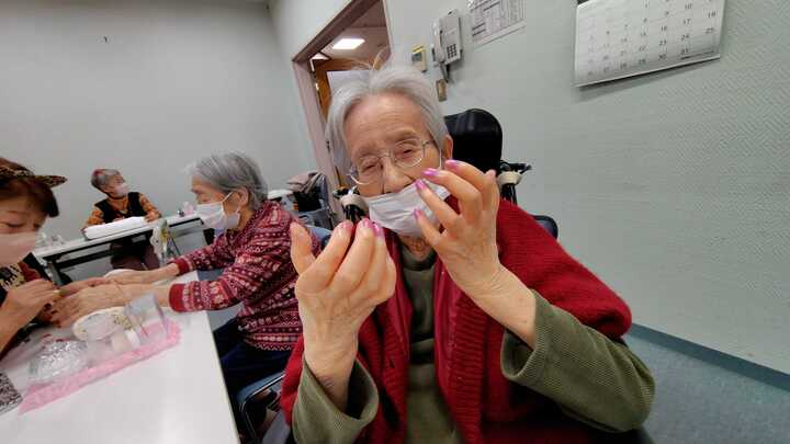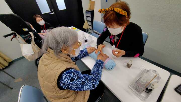 同法人、北区にある滝野川いこいの家の職員さんにお誘いいただき実現いたしました。老人ホームのご入所者様も「ただ爪を切る」だけのお手入れではなく、オシャレをしたいと思います!