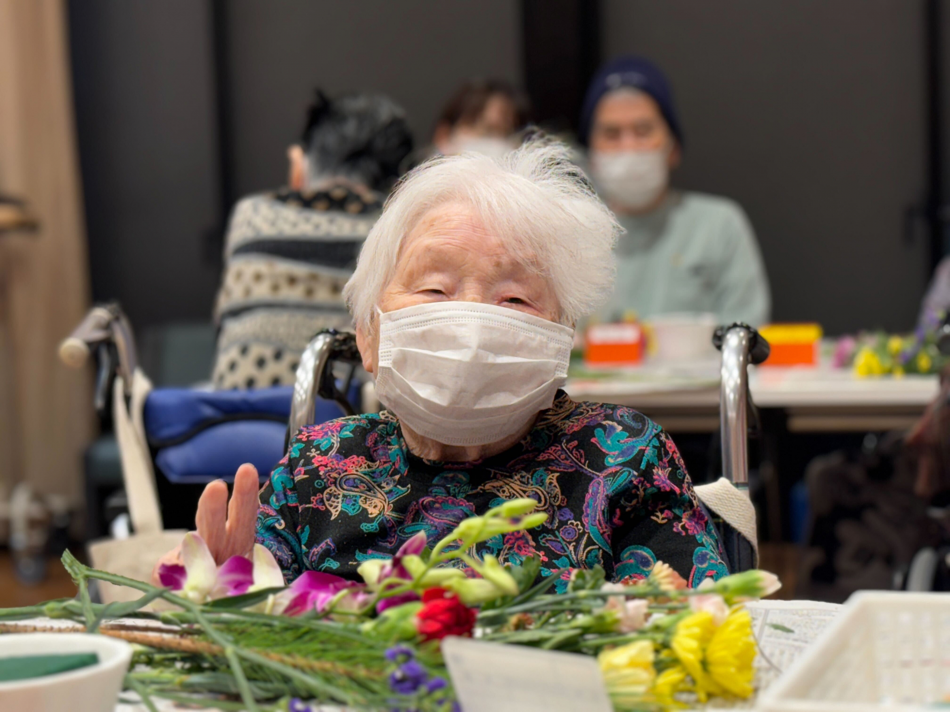 ご利用者様とご家族が一緒に花を選び、配置を考え、