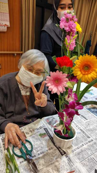 先生のアドバイスを聞きながら各々の感性を活かしたアレンジメントで華やかに!