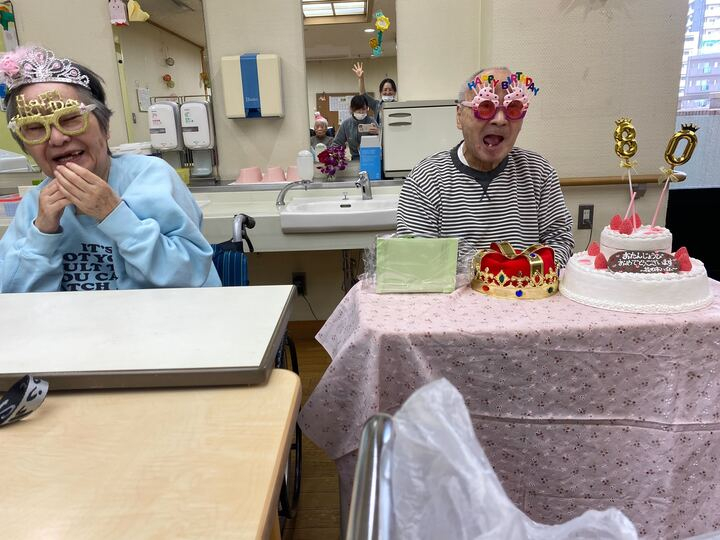 今日はM様のお誕生日だったので4階のご入居者様と職員でお祝いさせていただきました^^