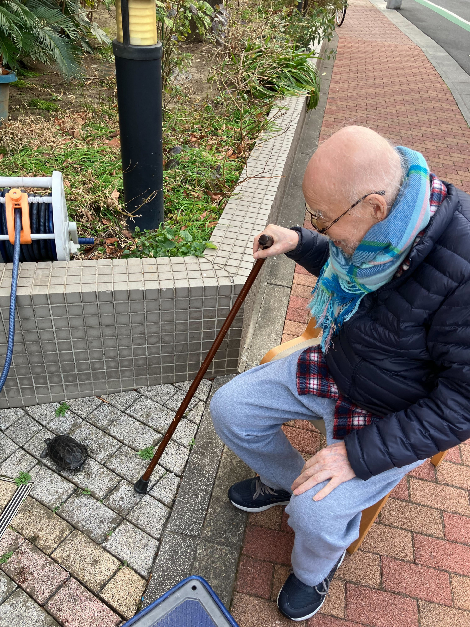 散歩がお好きなご利用者様と一緒に、くさがめのぼるのお世話も兼ねて散歩に行きました。