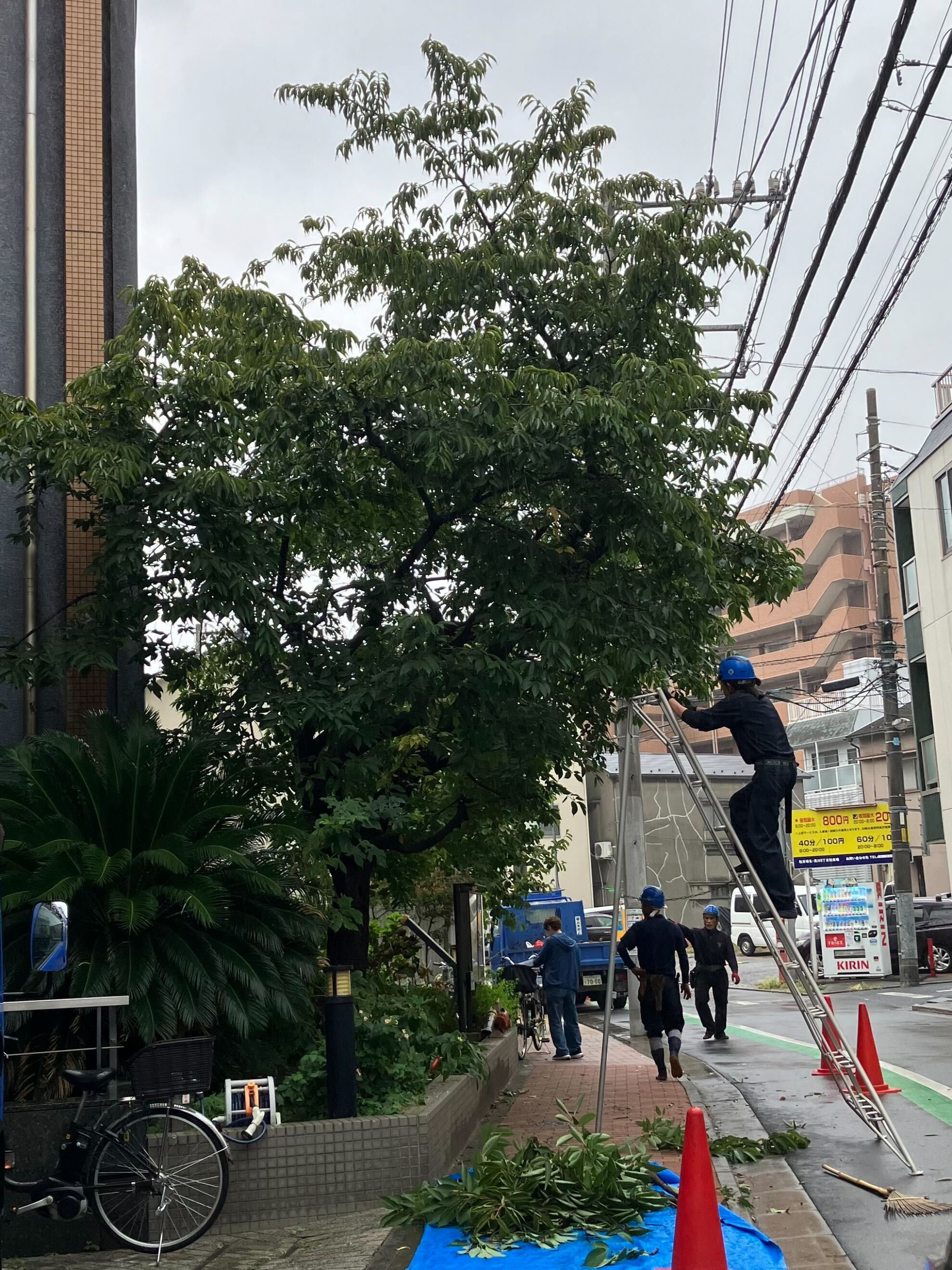 来年も綺麗な桜を咲かせてくれるように、枝を剪定です。