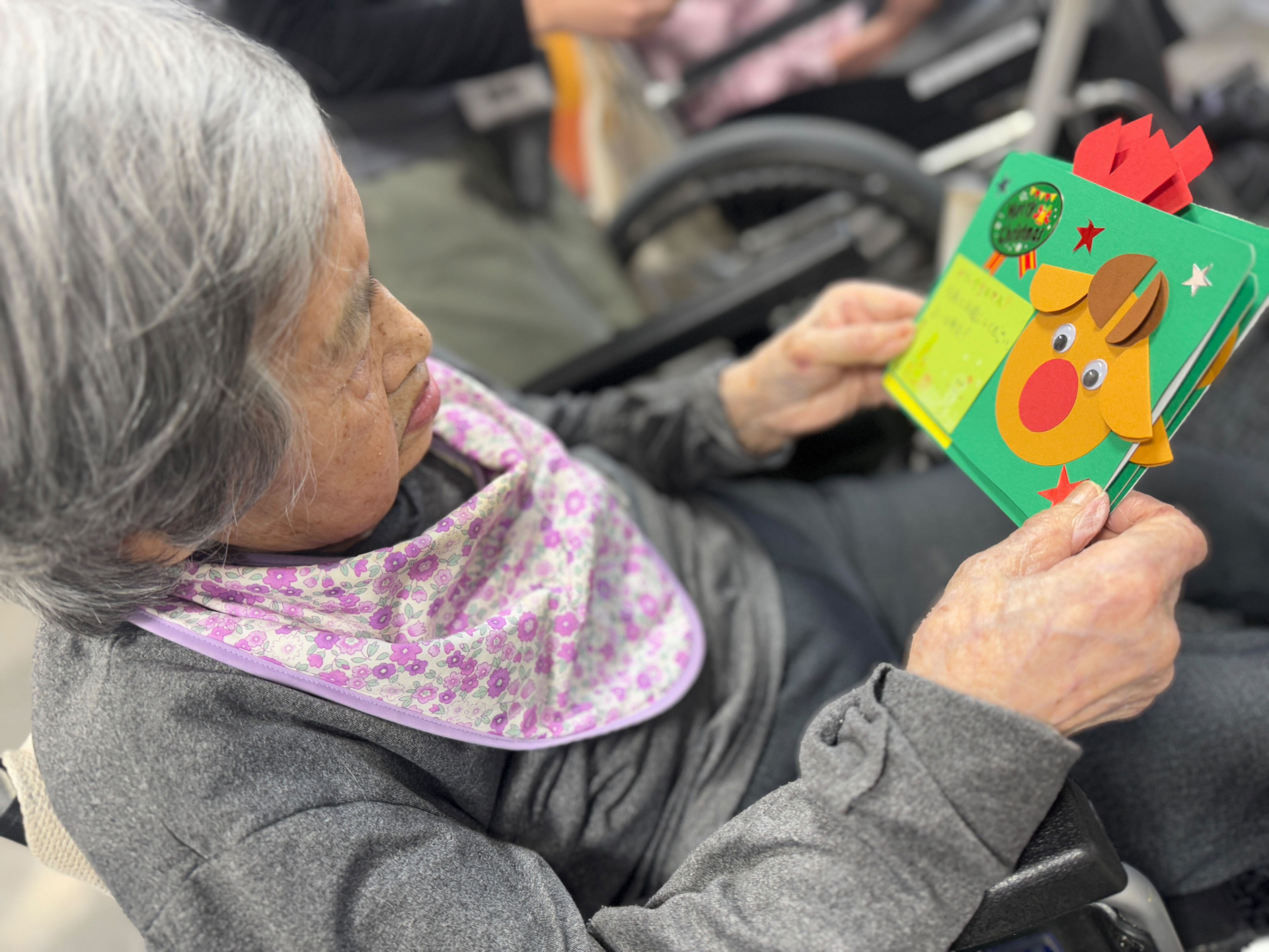 「とっても上手だね」「元気をもらったよ🎶」と、カードを眺めながら嬉しそうにお話しされる姿も見られ、心あたたまるひとときとなりました。