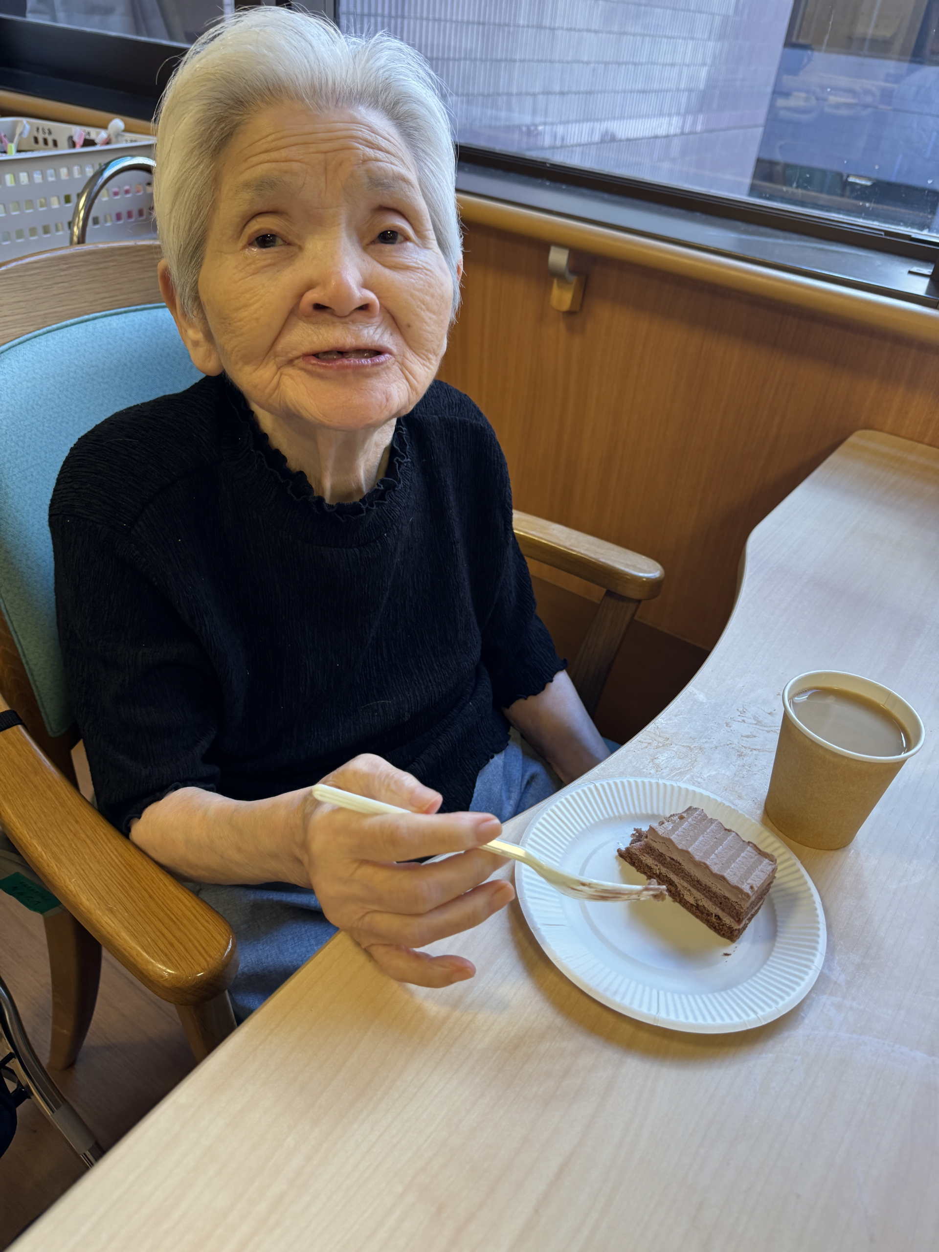 今回のおやつは、濃厚なチョコレートケーキに加え、「空」に見立てた爽やかなラムネゼリーと、「雲」に見立てたやさしい味わいの杏仁豆腐ゼリーをご用意しました。見た目にも楽しく、季節を感じる一皿となりました。