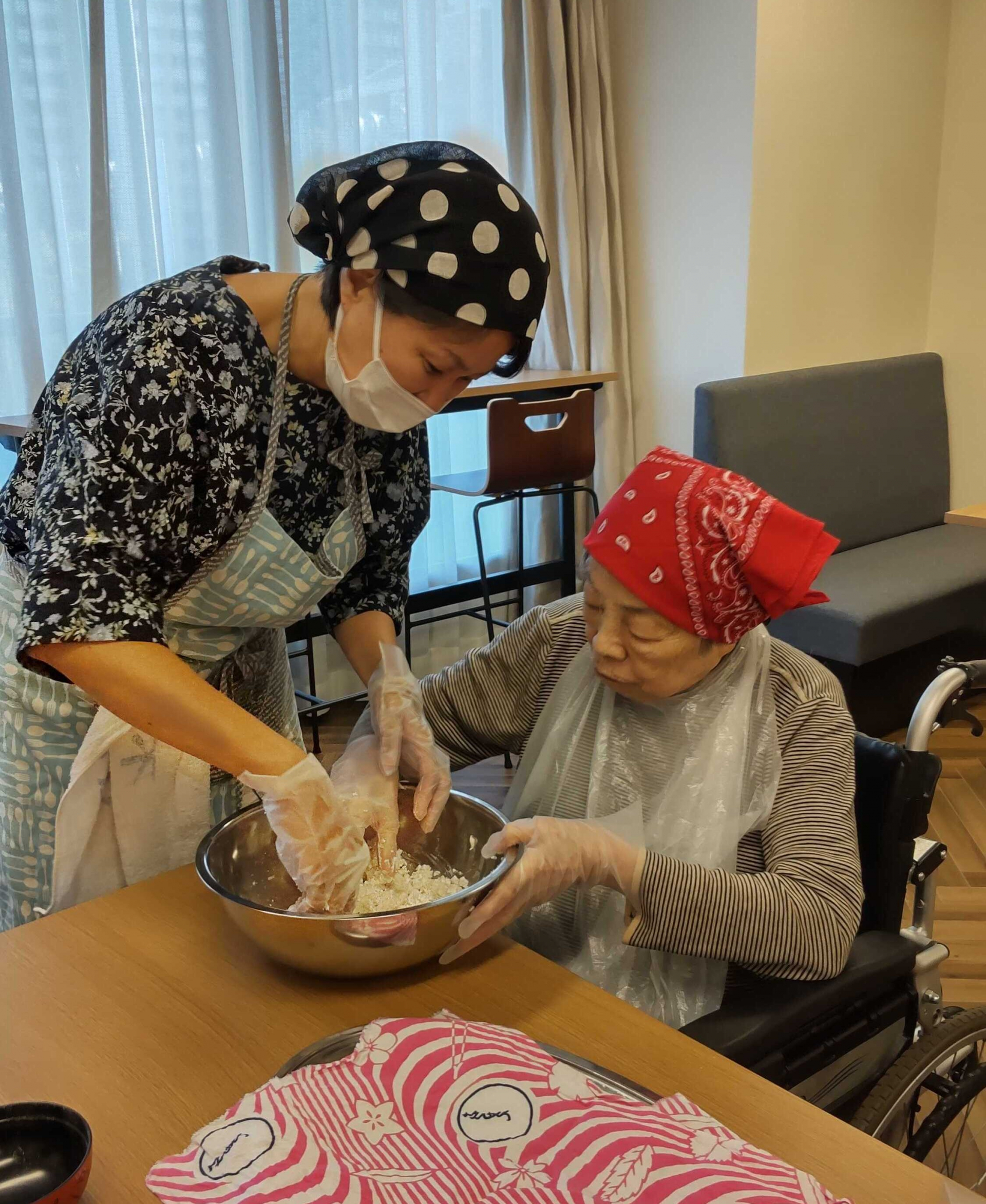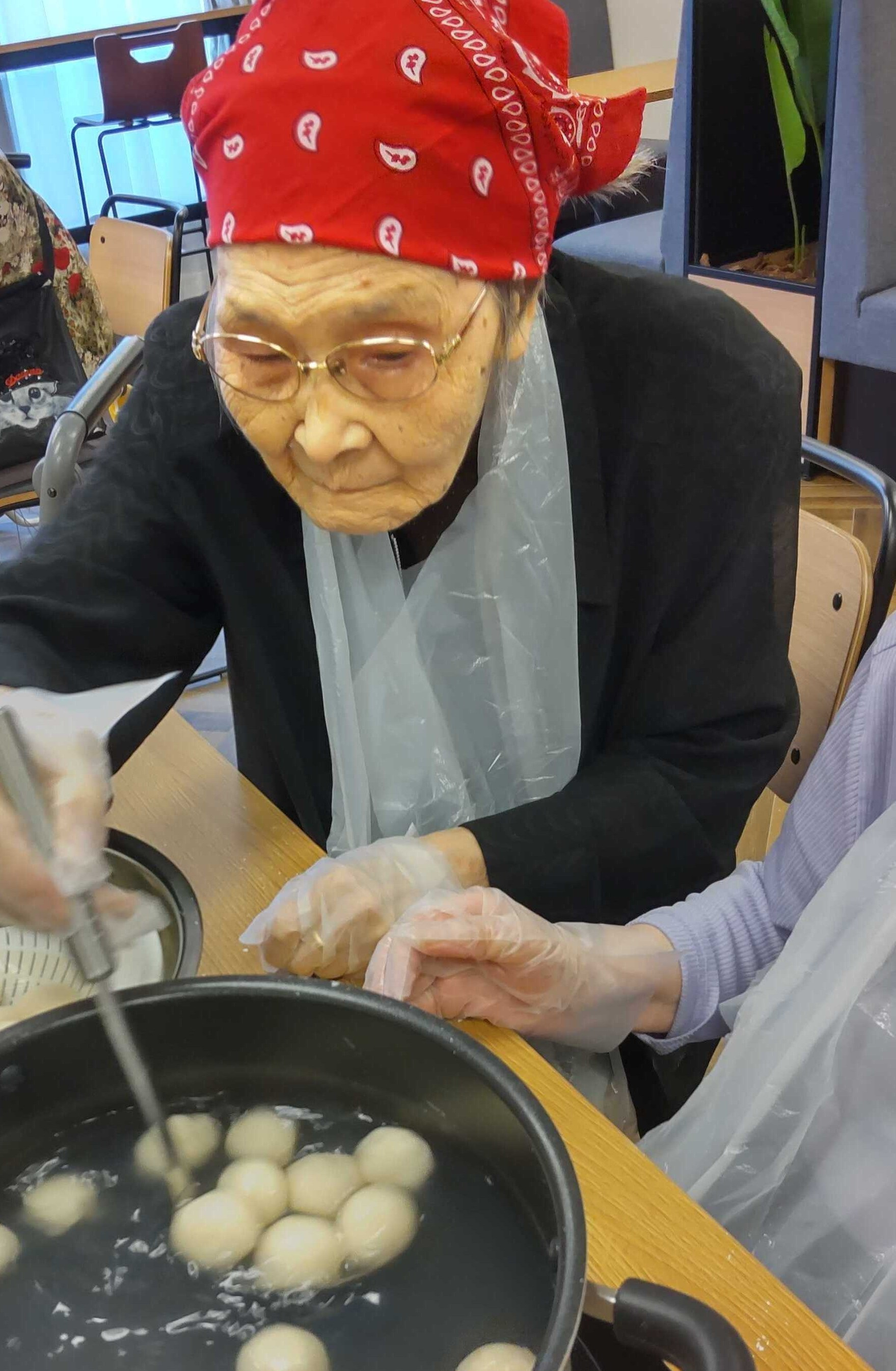 お団子はふわふわで柔らかくとても美味しく召し上がっていただきました。(安全を考慮して普段刻み食の人には小さく切ってからお出ししました。)