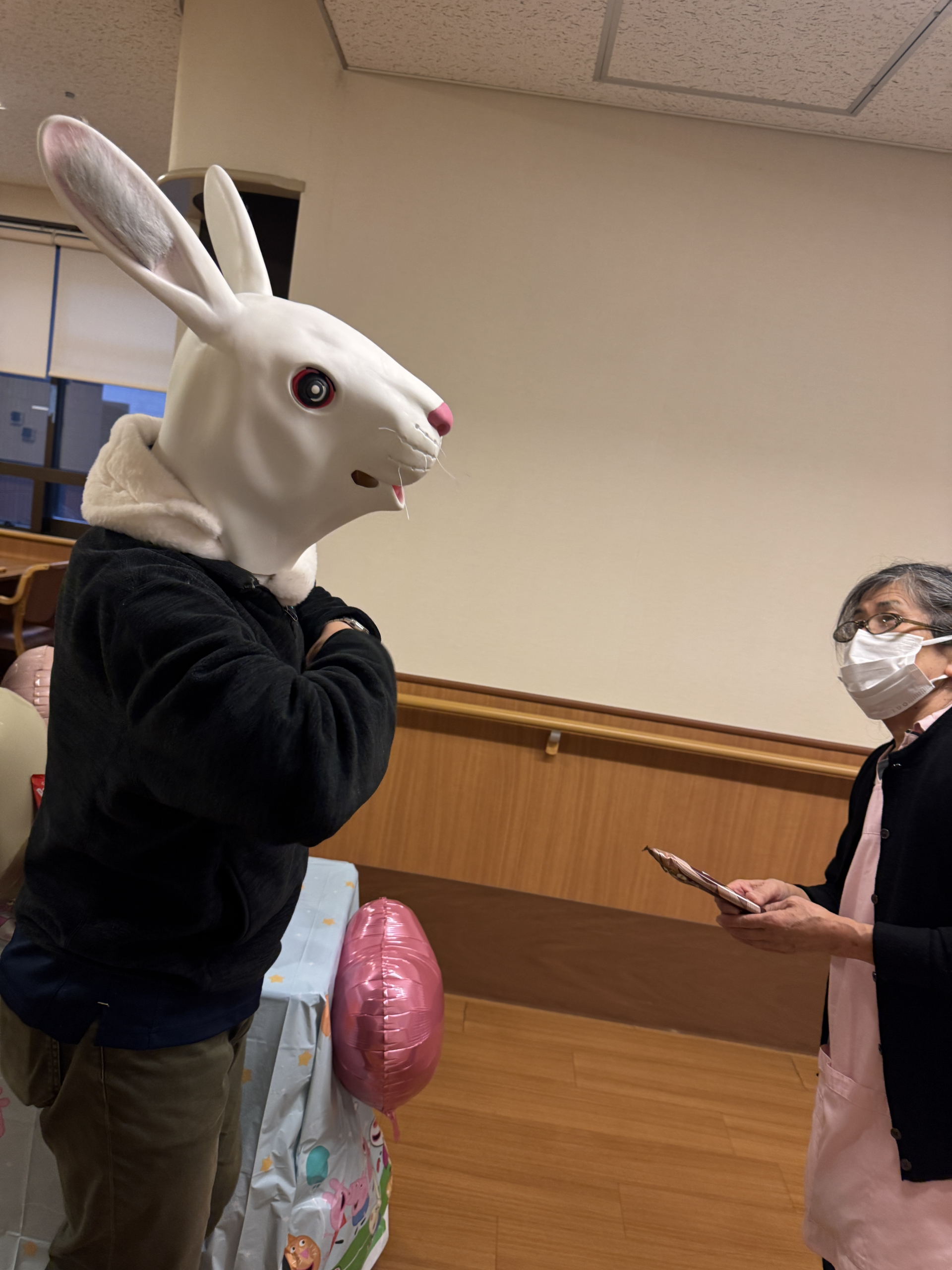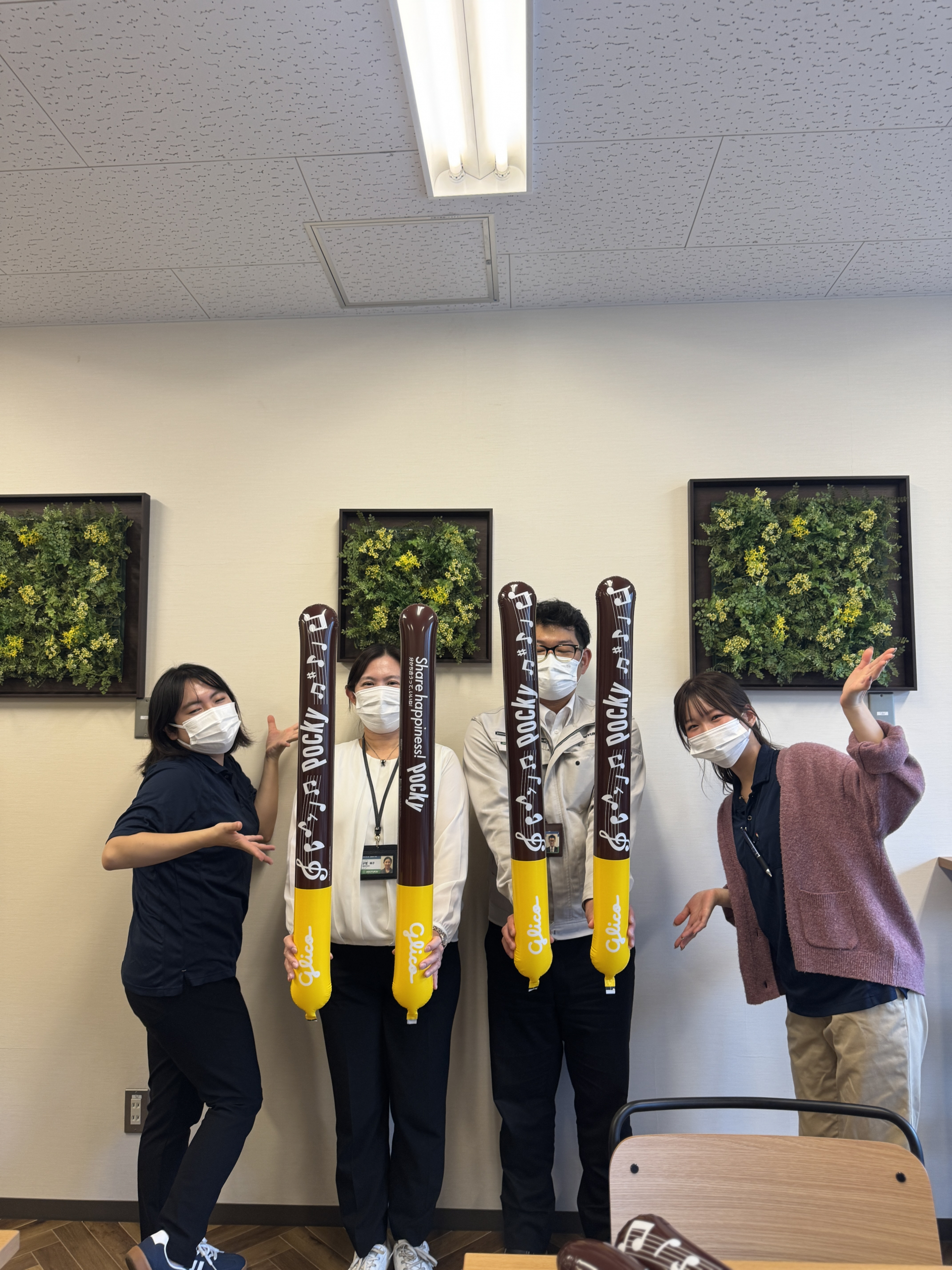 その後は職員の皆様にありがとうを込めて・・ポッキーを配りあるきました!