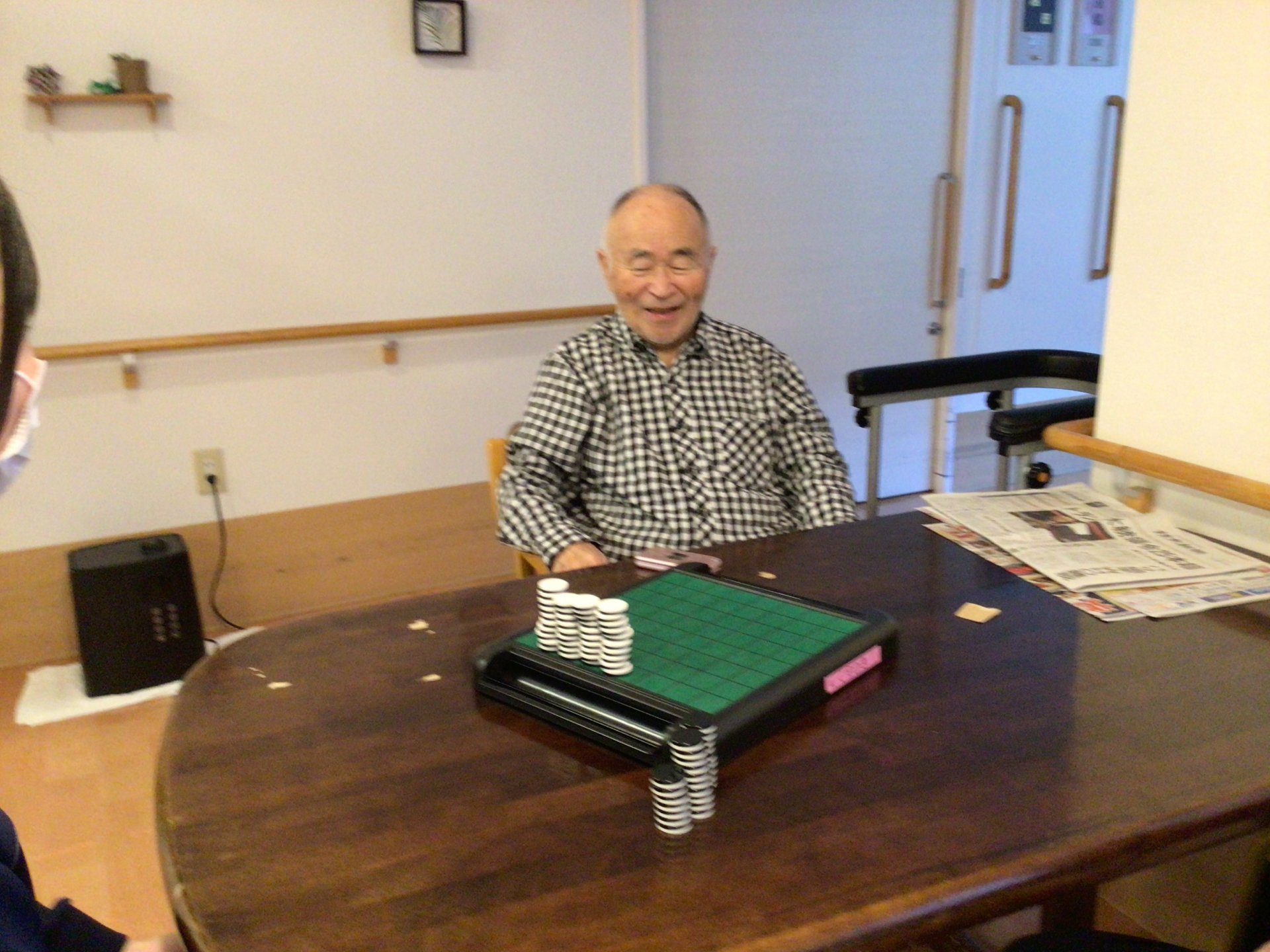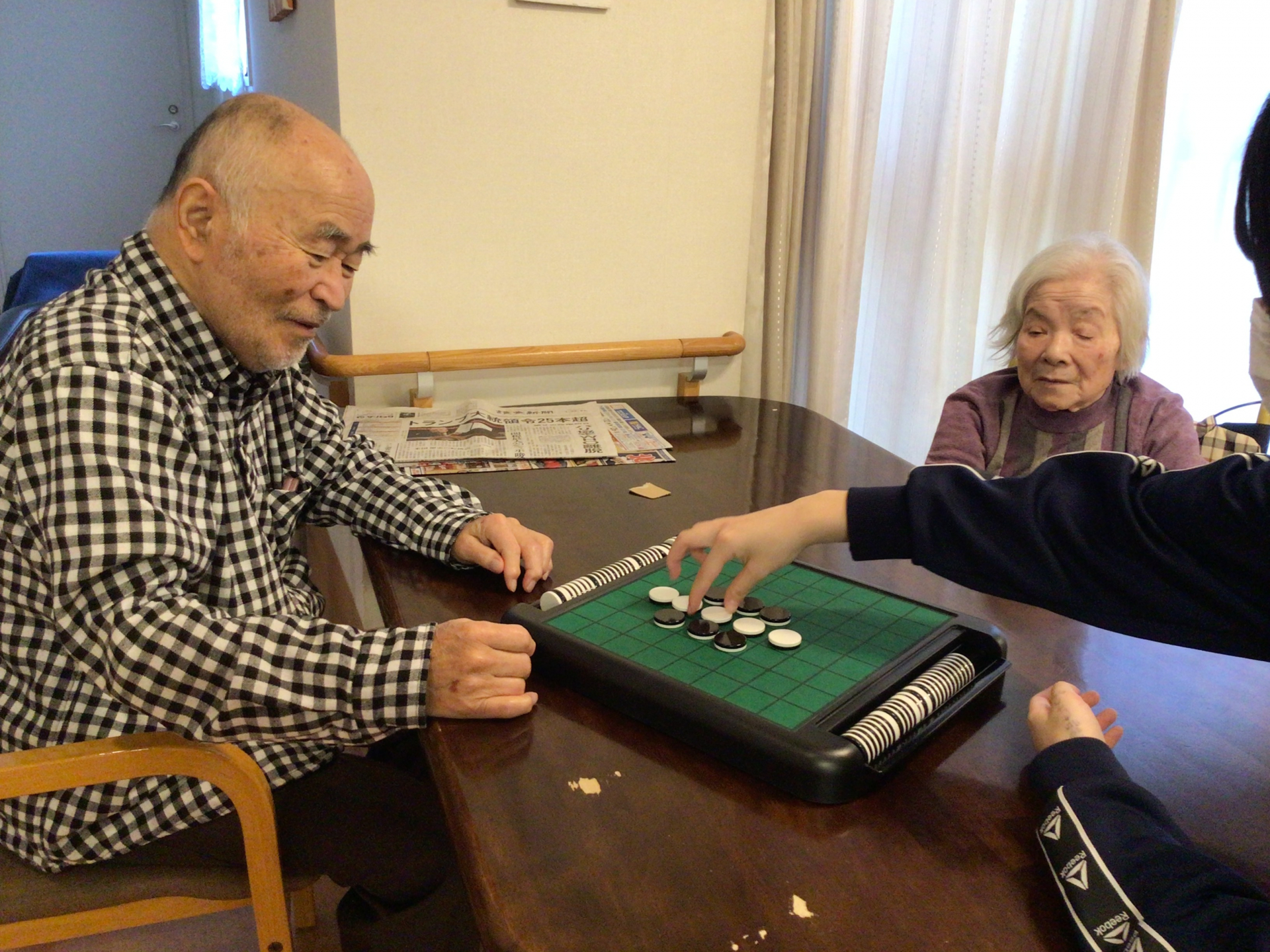 食事やおやつの配膳や、おしぼりを巻いたりとお手伝いをしてもらい、その後はご入居者と坊主めくり、オセロをして、ご入居者とコミュニケーションと取りました。