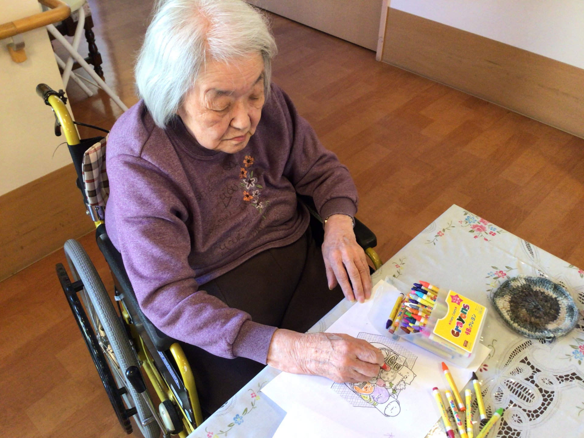 職員と一緒に色塗りをしていただきました。