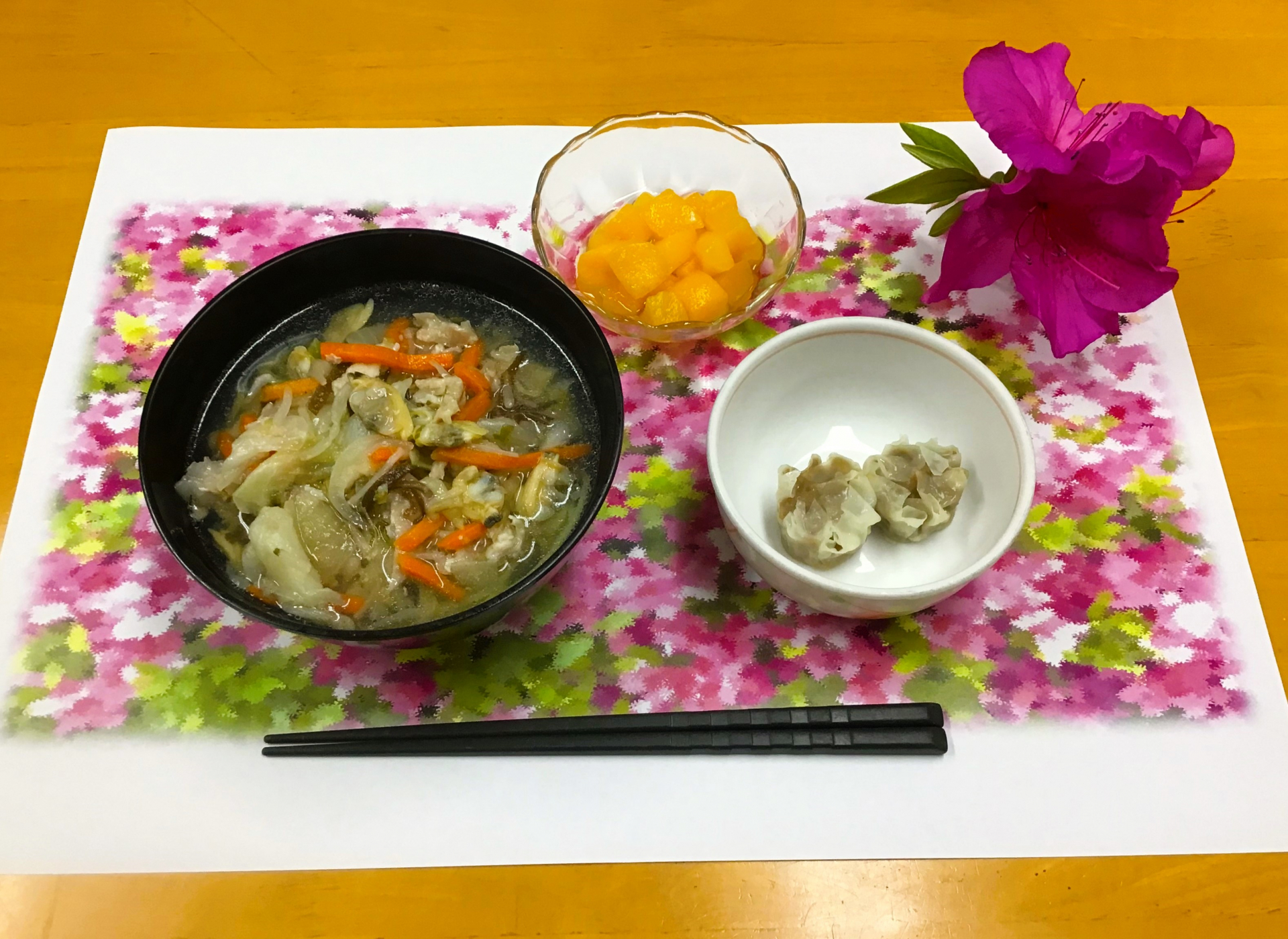 2025.04.28 お食事 ラーメンの日 Tweet シェアする 本日の昼食は海鮮入りの塩ラーメンとシュウマイとデザートです。 おしゃべりしながらお味の感想をうかがいました。 「おいしかったです!」 支援課K 前の記事 2025.04.29 お食事 ある日のご様子を紹介します。 次の記事 2025.04.27 お食事 ツツジと一緒に 一覧へ戻る