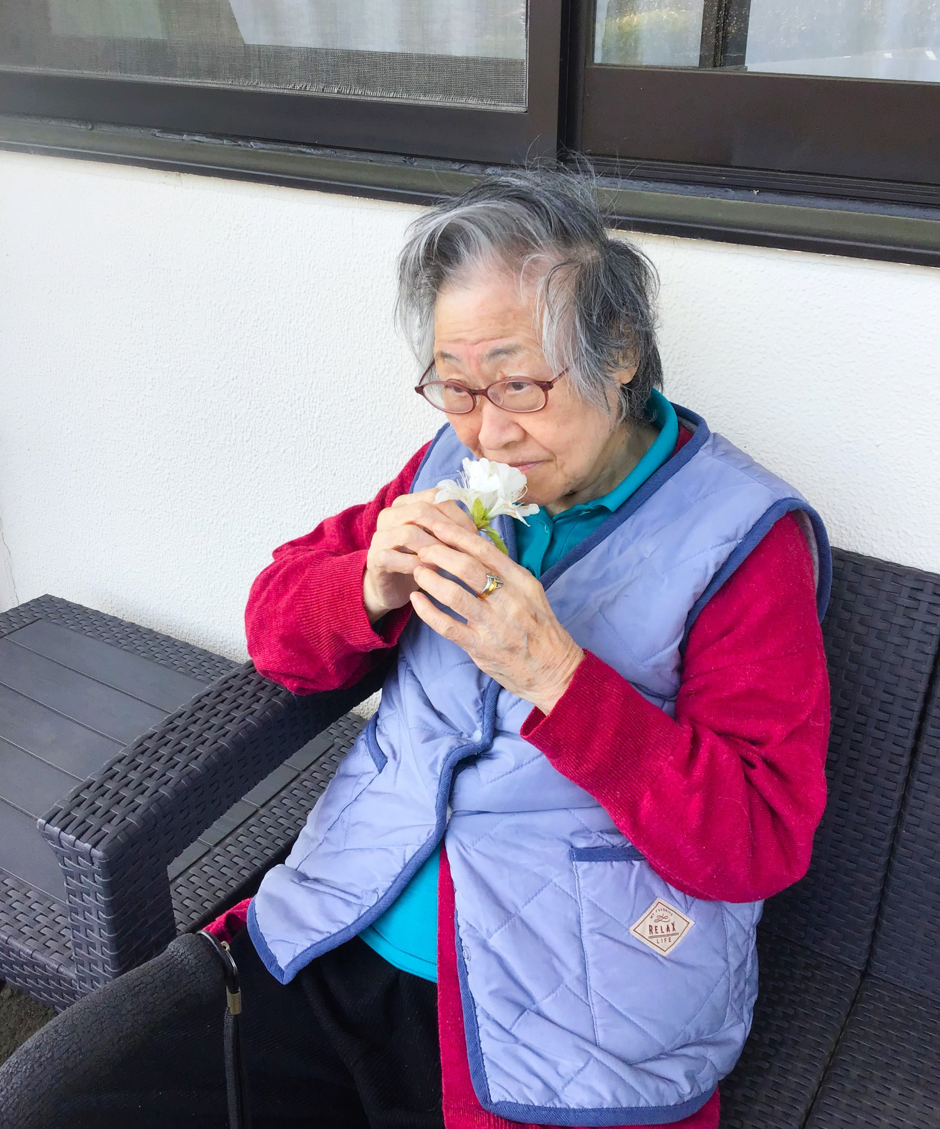 つつじの繊細な香りを楽しまれていらっしゃいます。「いい香りするよ」と。