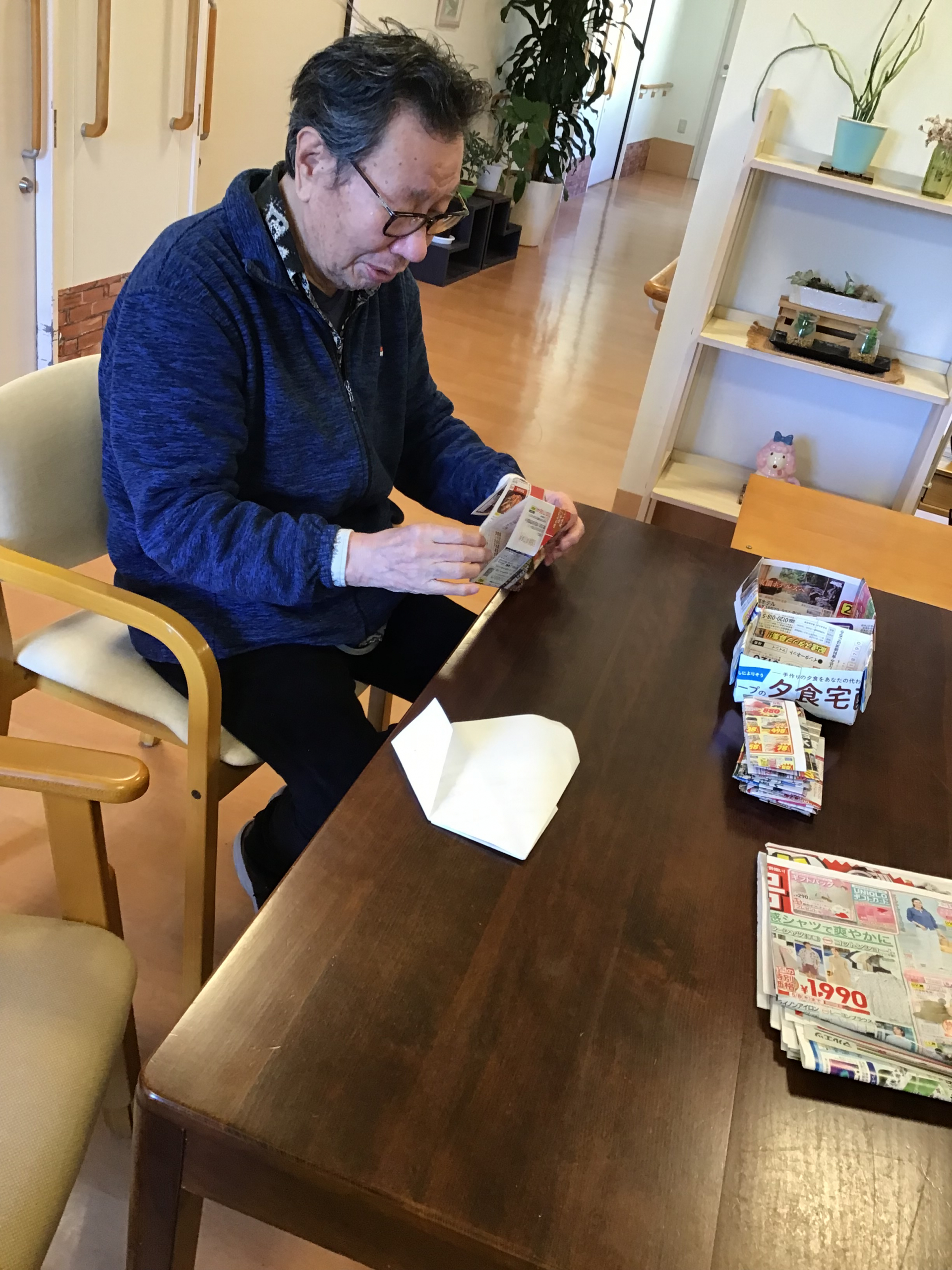 2025.05.08 活動報告 ゴミ箱を作って頂く Tweet シェアする 古いチラシからゴミ箱を作って頂く。 いつもありがとうございます。 【なつめLP】 前の記事 2025.05.08 活動報告 外でおしゃべりを楽しむ 次の記事 2025.05.08 活動報告 美味しそうに召し上がりました〜 朝食の様子 一覧へ戻る