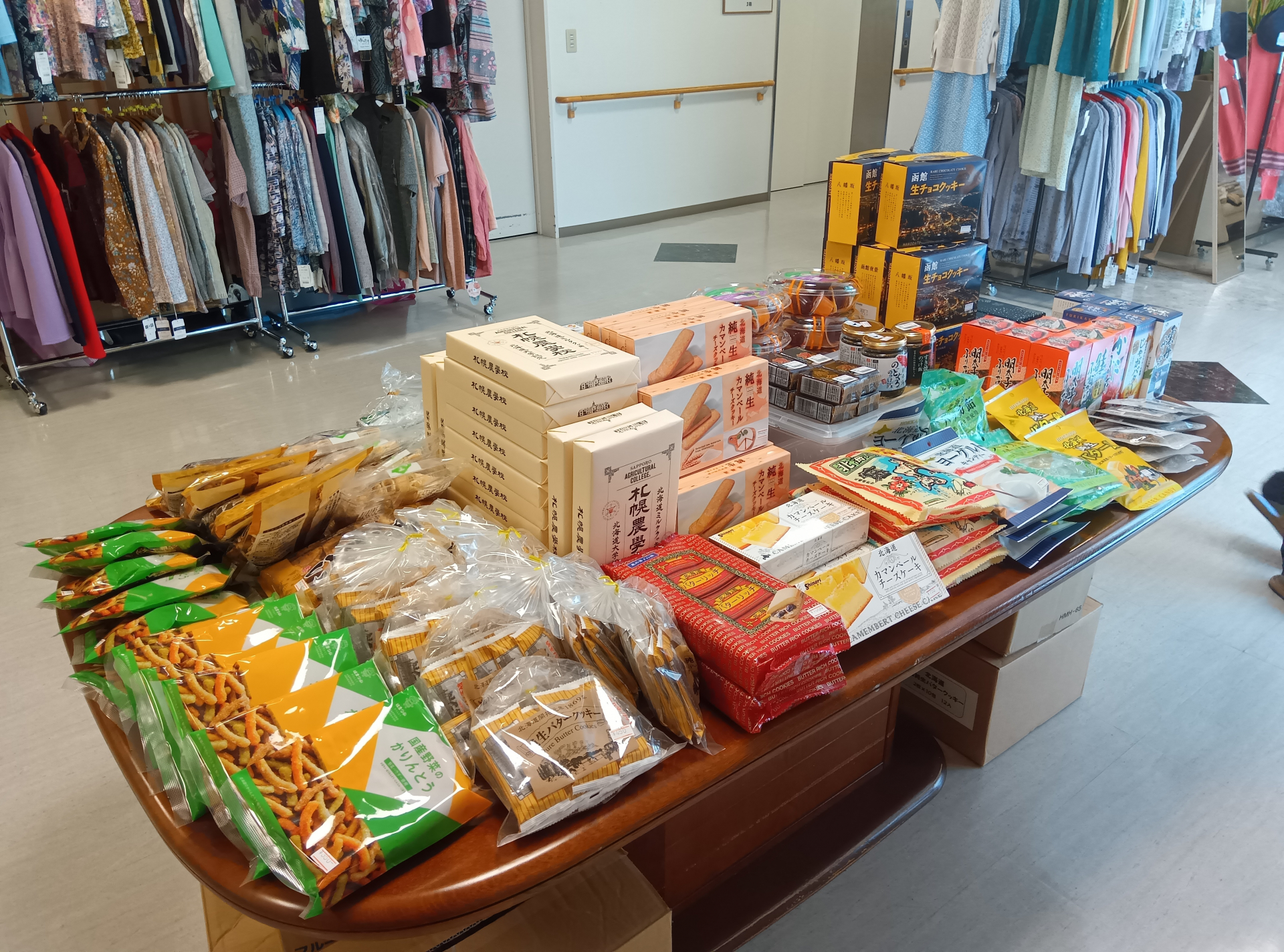 衣類を中心に、ご当地物のお菓子等が揃っています。