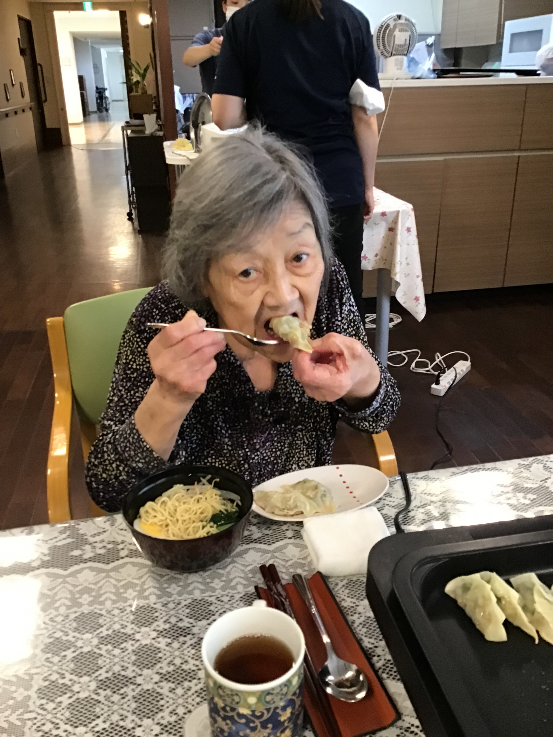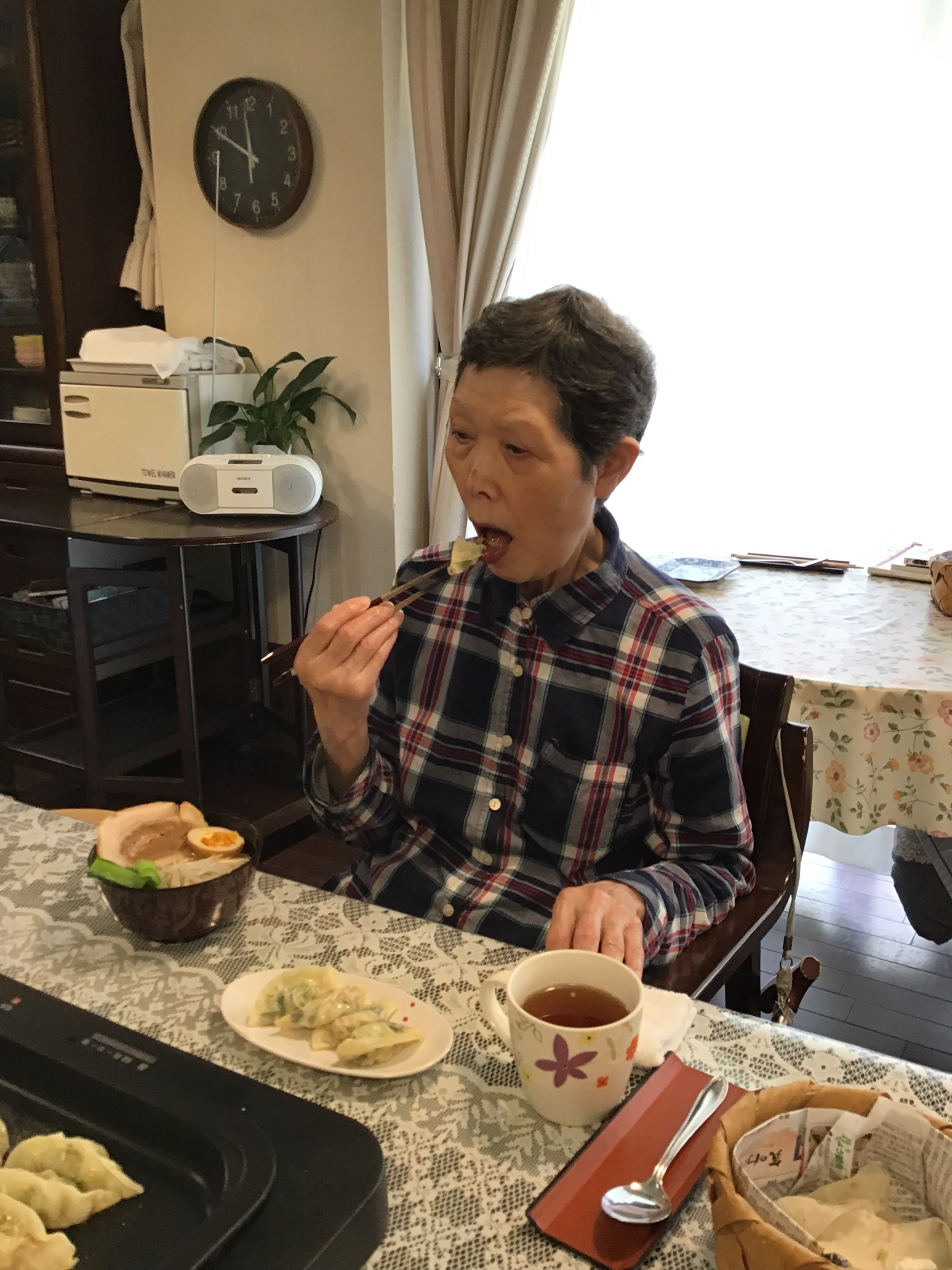 焼きあがるのを待つ間にラーメンの下準備をしたり、お話をしたりしました!
