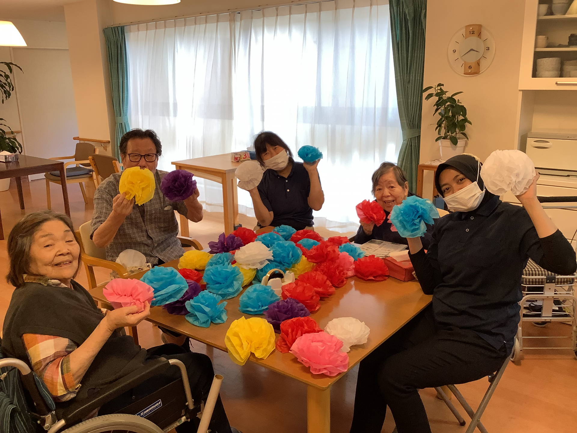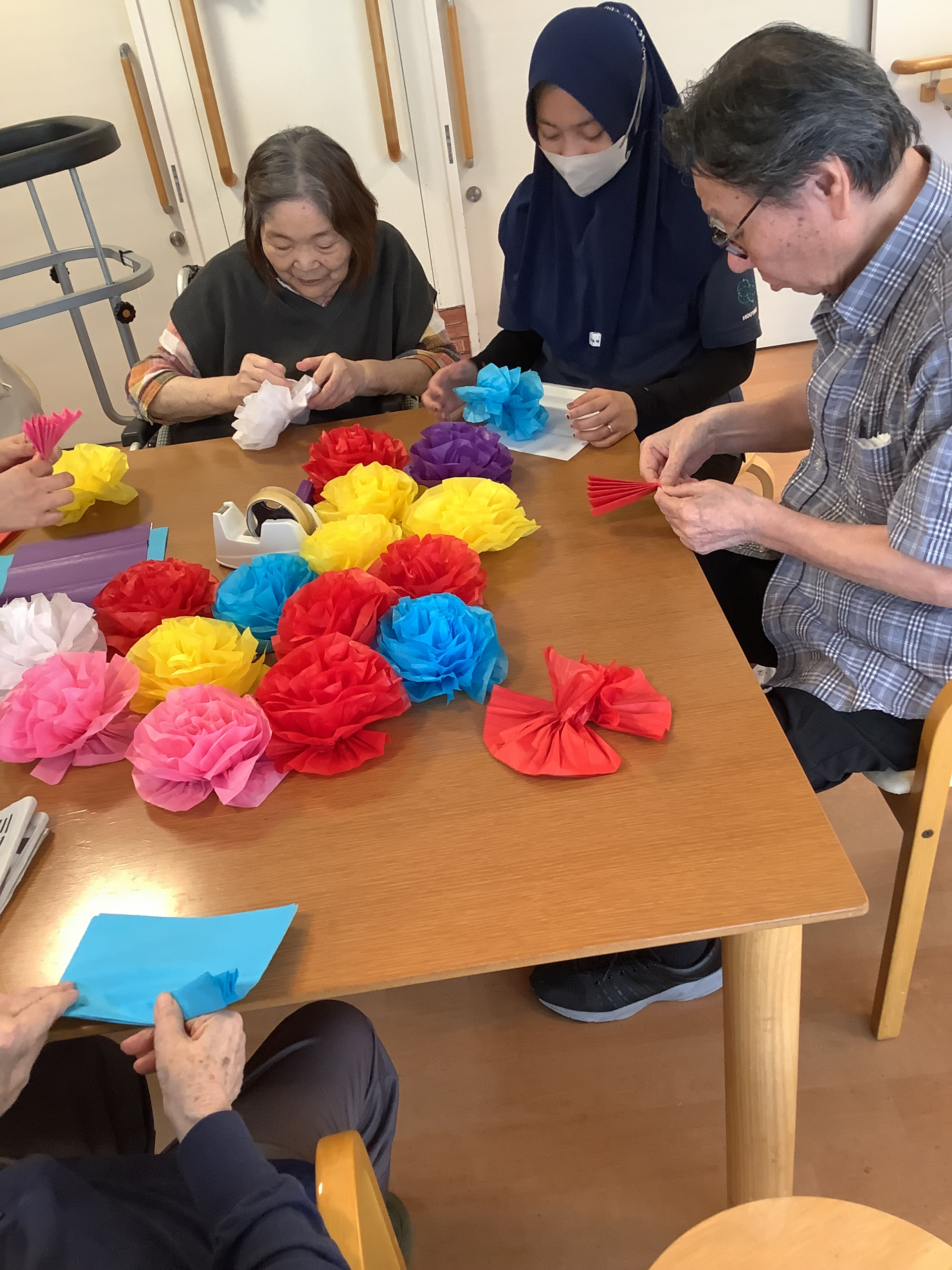 2025.08.03 活動報告 お祭りの飾りを作りました Tweet シェアする 今日は、お祭りで使う飾りを作って頂きました。 1つずつ丁寧に折り、お花を作りました。 完成です。ありがとうございました。 なつめユニット はな 前の記事 2025.08.04 活動報告 季節のフルーツ🍑 次の記事 2025.08.02 活動報告 盆踊り練習 一覧へ戻る