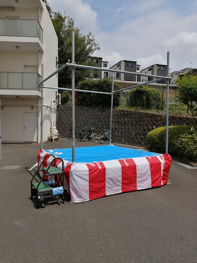納涼祭の盆踊りのためにやぐらを作成しました。