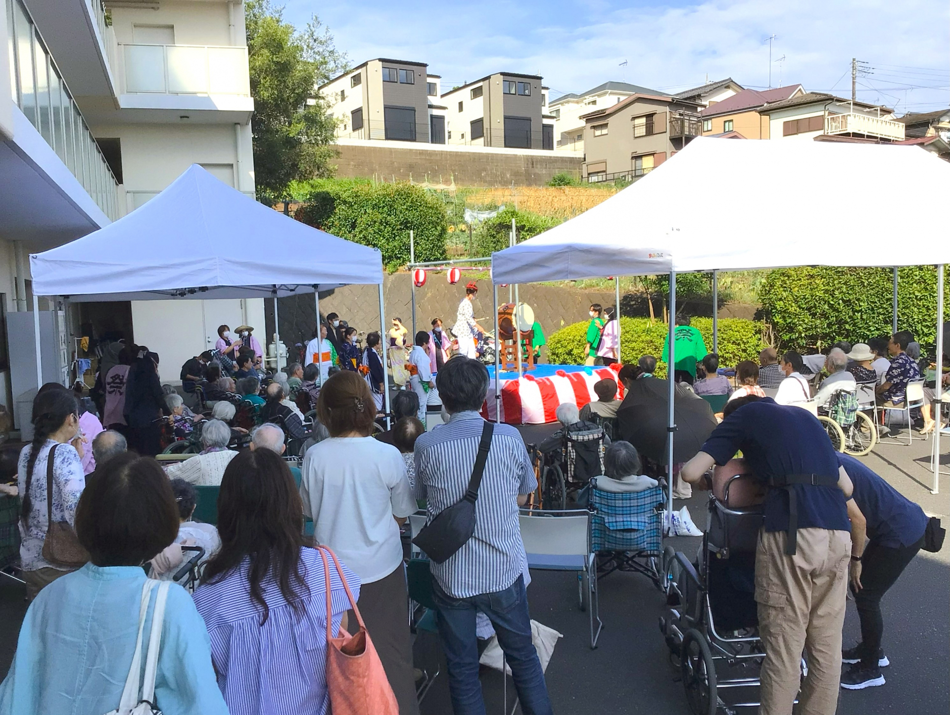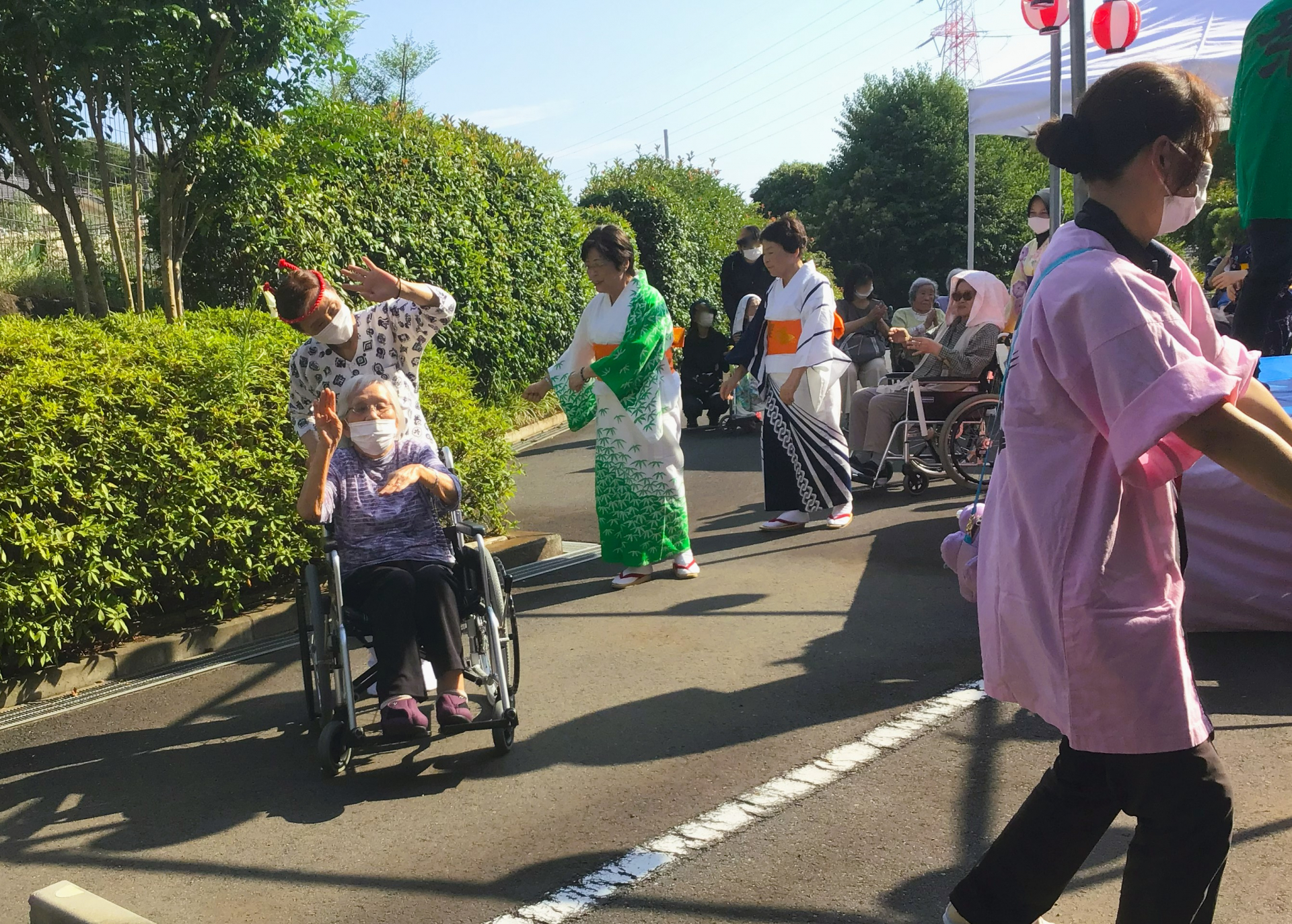 川井町内会の女性部の方々はすてきな舞でお祭りを盛り上げてくださいました。町内会様からは太鼓を、さくら苑様からはテントをお借りすることができました。