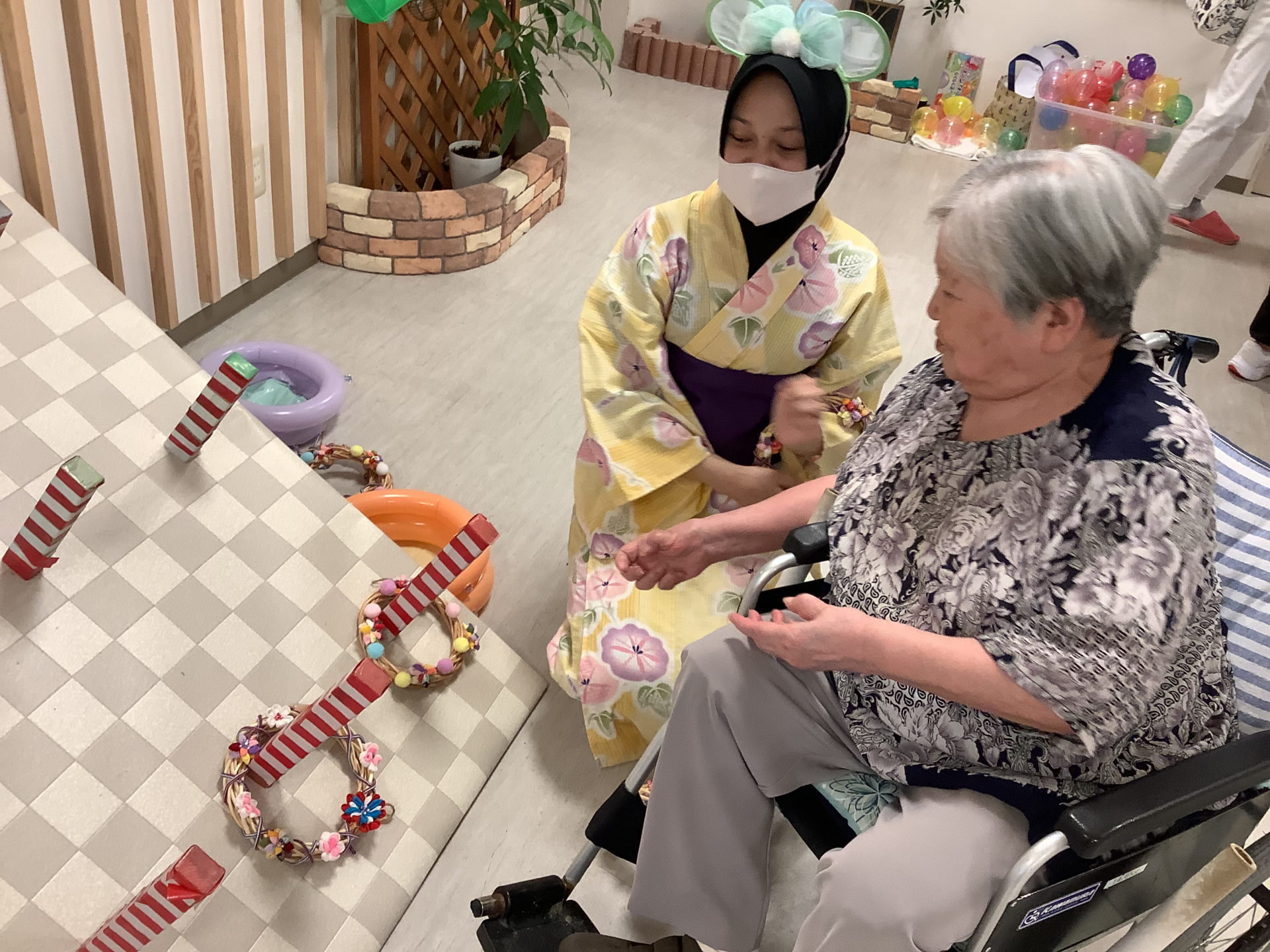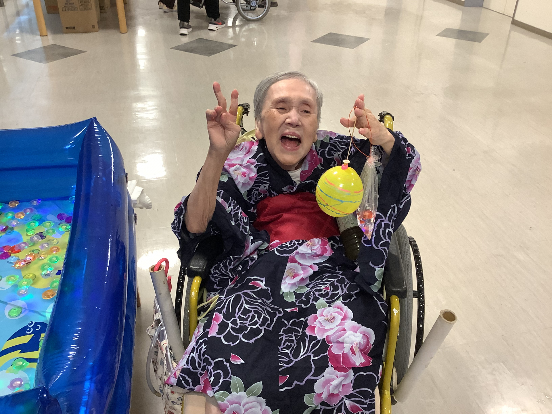 ヨーヨー釣り、金魚すくい、輪投げ、くじ引きを楽しんで頂きました。