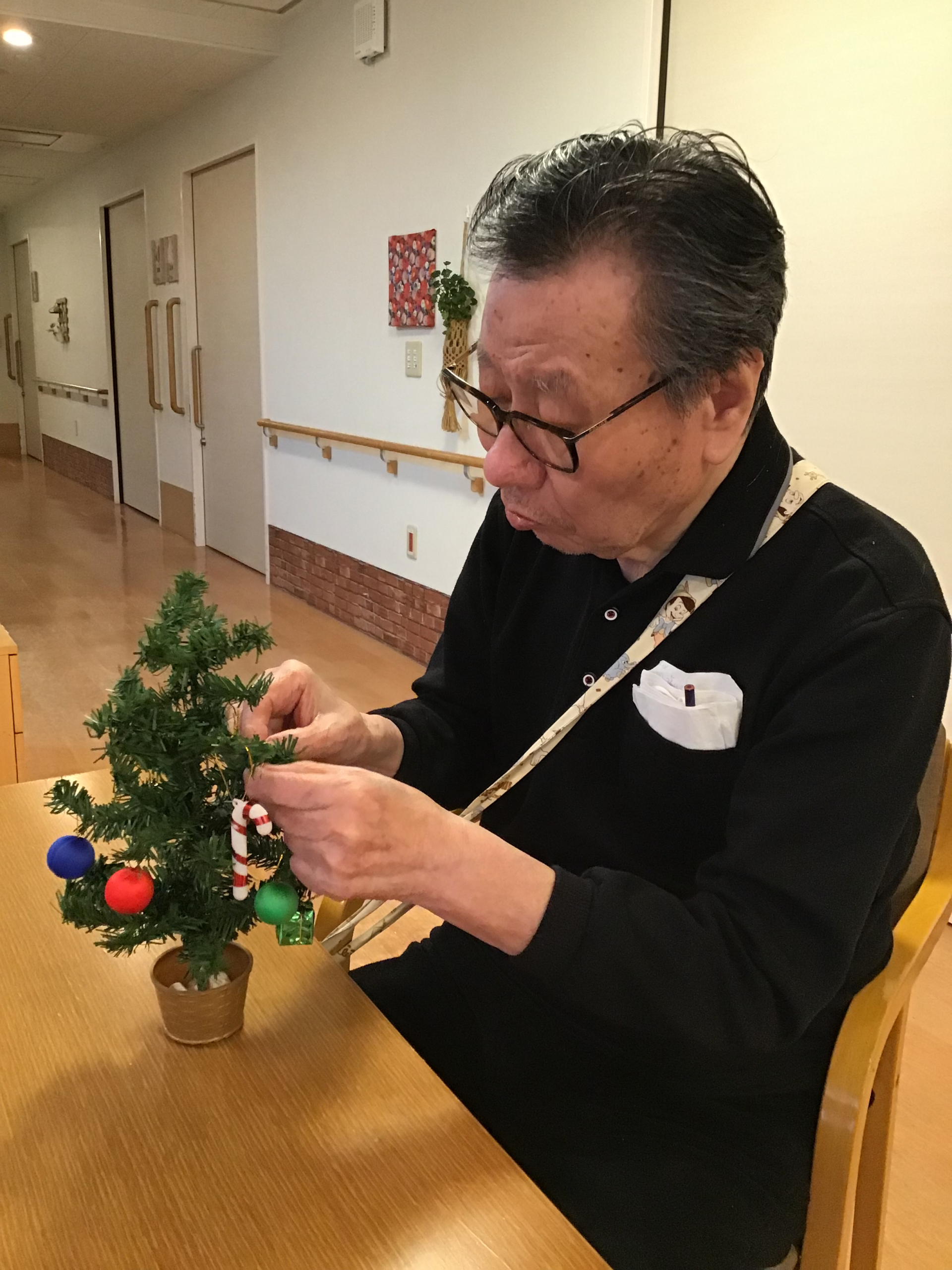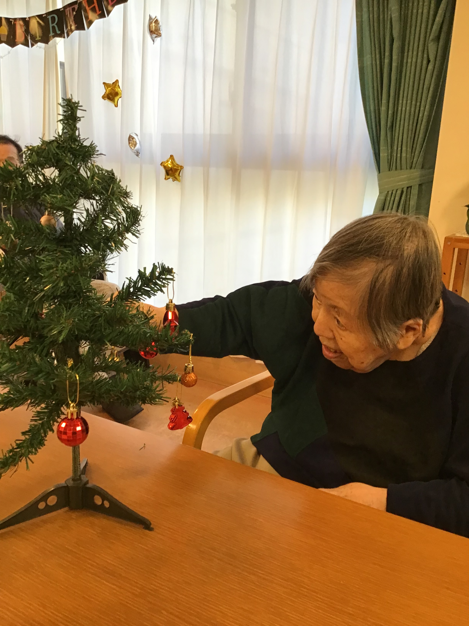 本日おやつ時間が終わった後、ミニクリスマスツリーを飾りました。