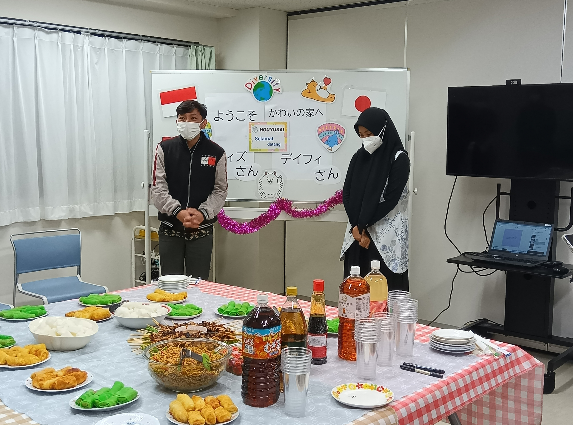 先輩たちが、インドネシアの料理を作ってくれて、歓迎の会を行いました。