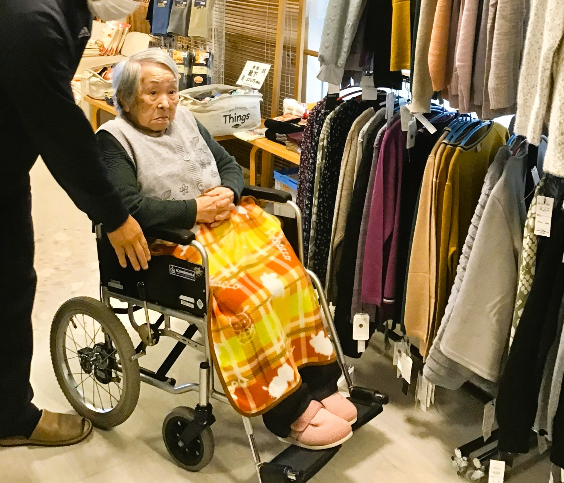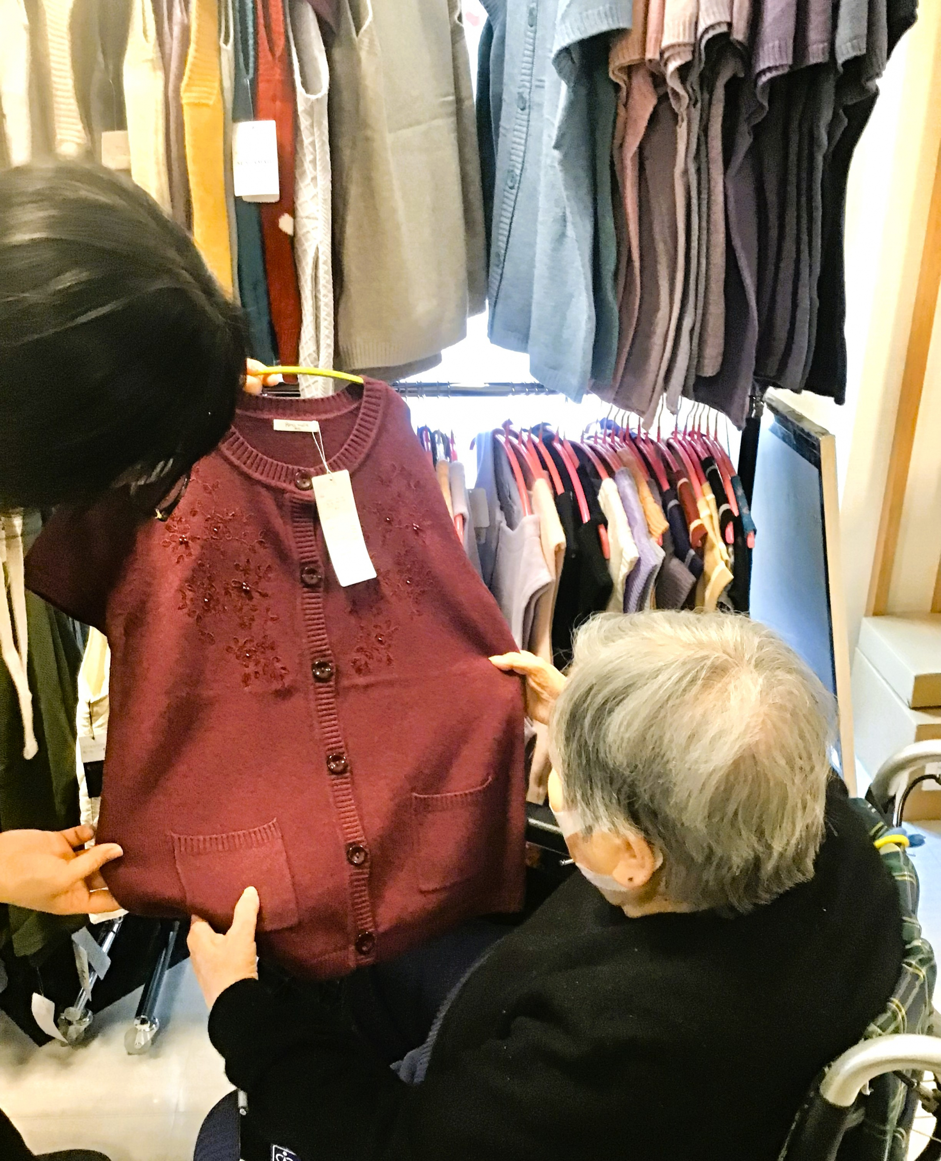 先日、お買い物イベントとして、アミュージンさんが来てくださり、冬物の洋服やパジャマなど試着をしたり、鏡を見て合わせたりしながら買い物を楽しまれました。