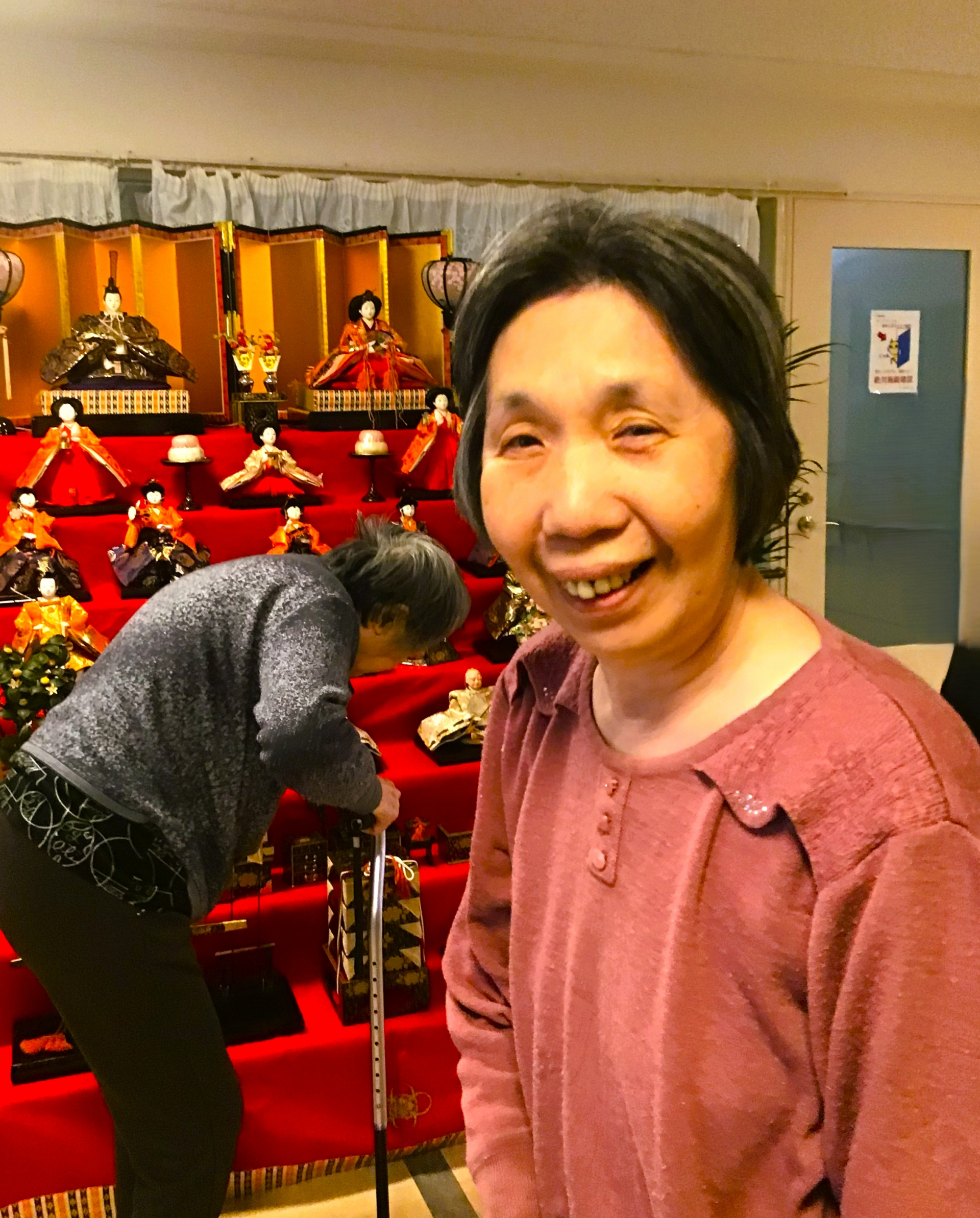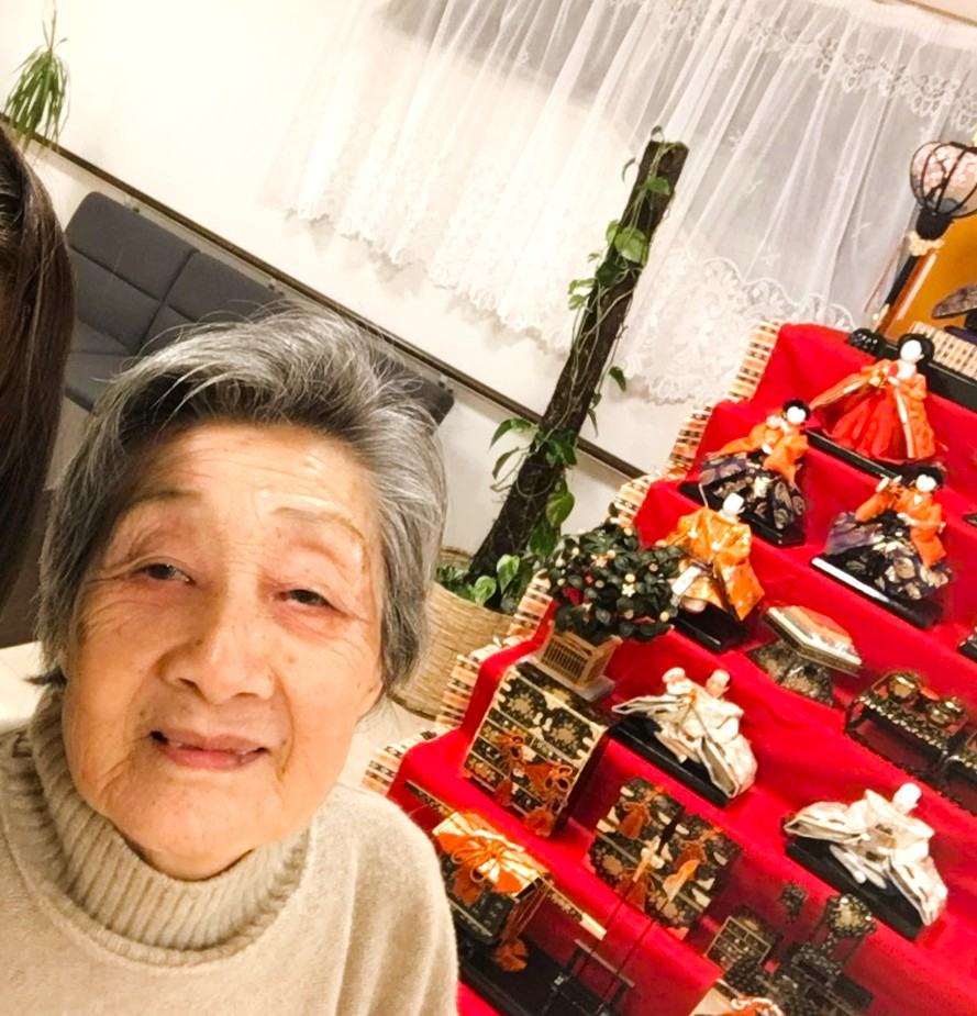 現在かわいの家の1階にひな人形を飾ってありますので、散歩がてら楽しまれています。
