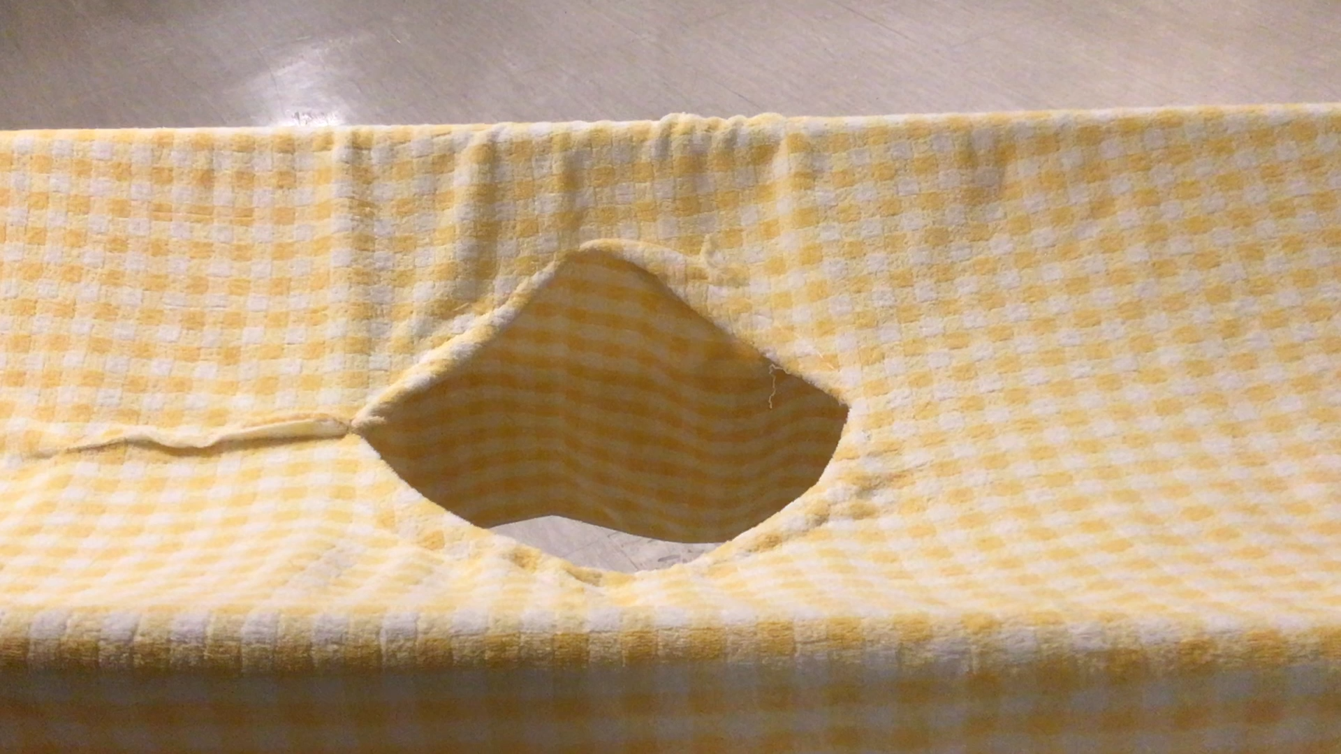 ①穴を開けたリサイクル用のタオルケット