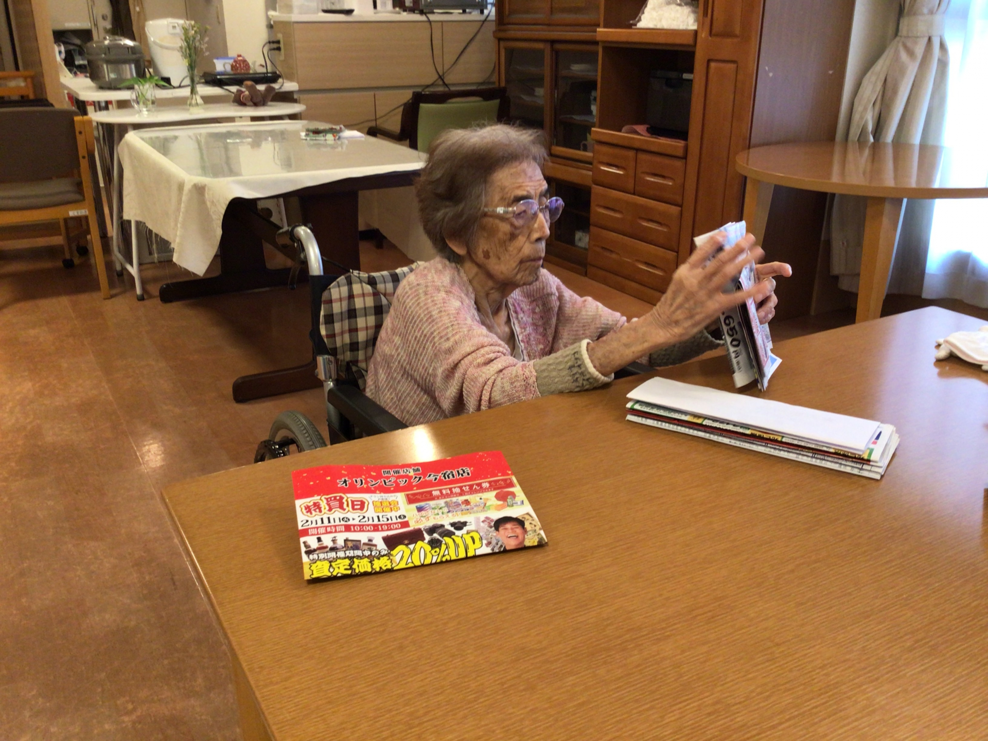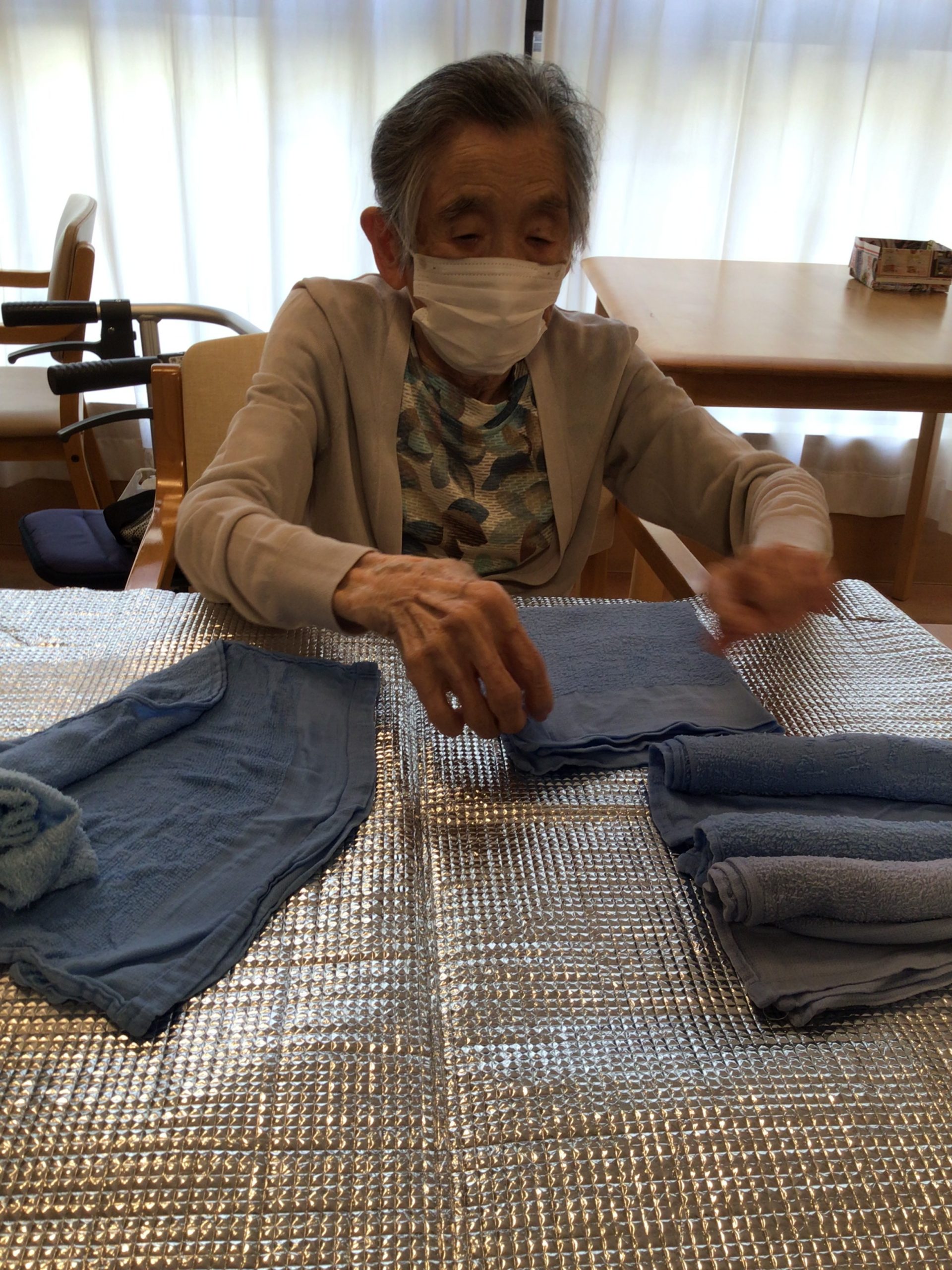 本日も夕食までの時間は皆さんで新聞や清拭のタオルを畳んで頂きました。