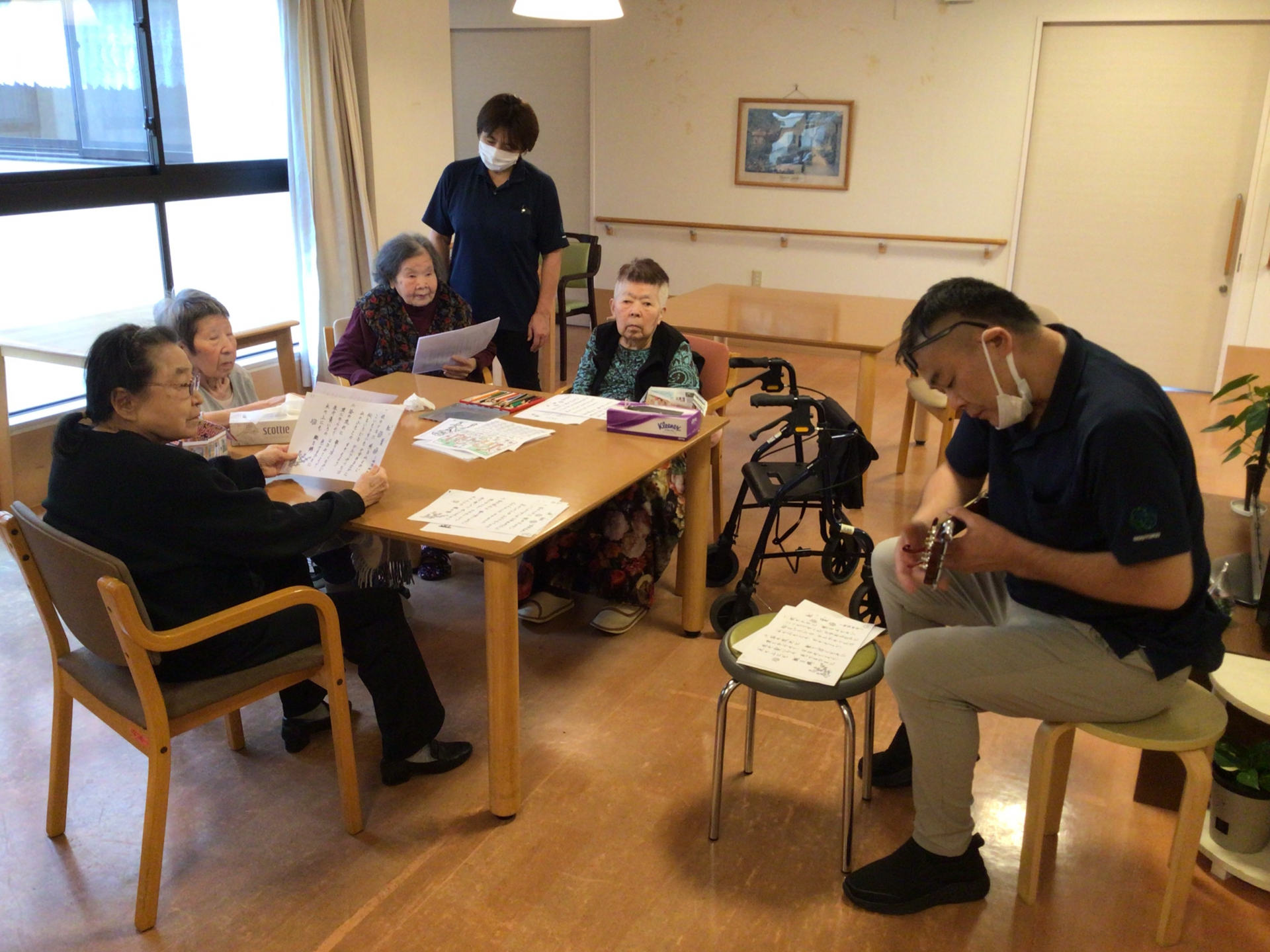 2025.11.02 活動報告 みんなで歌お〜 Tweet シェアする おやつ前のお口の体操〜🎵 ギター演奏にて皆さんで童謡を何曲か熱唱しました。 皆さん歌は大好きですね❤️ この後はおやつを美味しくいただきました。 くすのきユニット H・H 前の記事 2025.11.20 活動報告 🤶 クリスマス飾り付け 🤶 次の記事 2025.10.28 活動報告 ショートステイユニット ミニミニ運動会【心身活性化】 一覧へ戻る