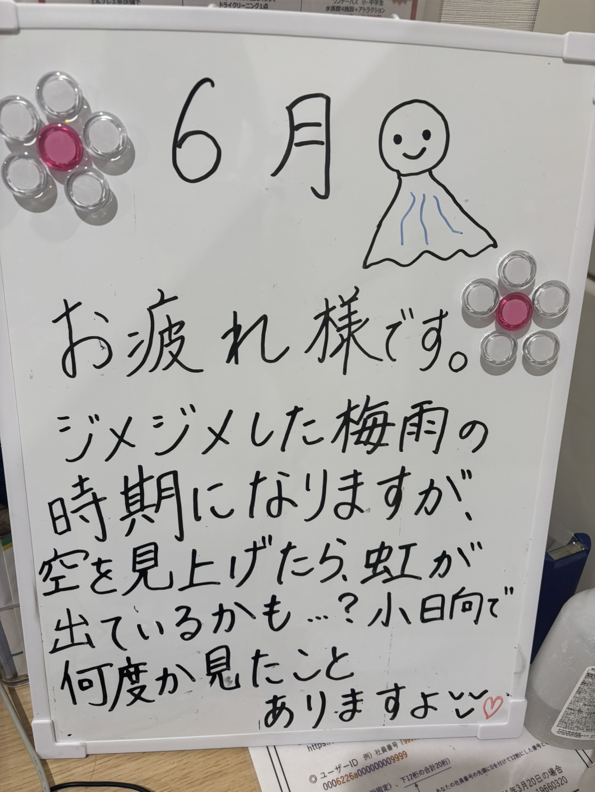 6月のメッセージとして文京小日向の家 職員さんが全員通る勤怠パソコン横に置いてみました。