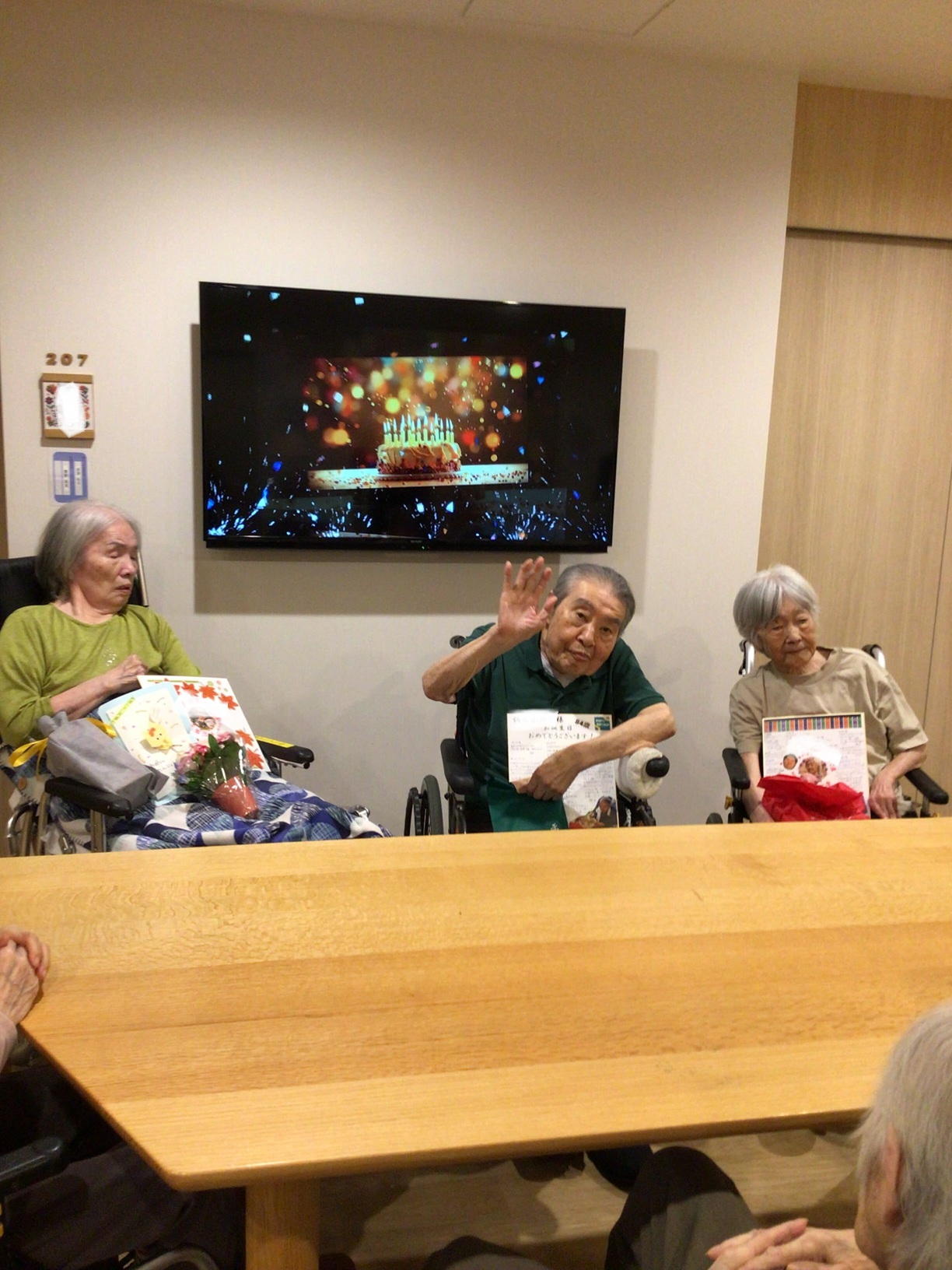 当日は、9月生まれの3名の方のお誕生日をお祝いしました。お祝いの場にふさわしい、暖かく和やかな雰囲気の中、皆さん笑顔で過ごしました。