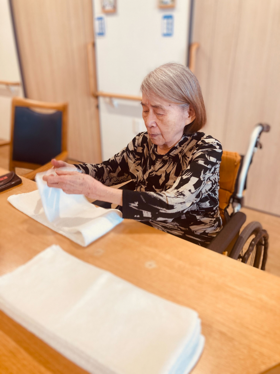 タオルたたみのお手伝いをお願いしたところ、快く引き受けてくださいました。
