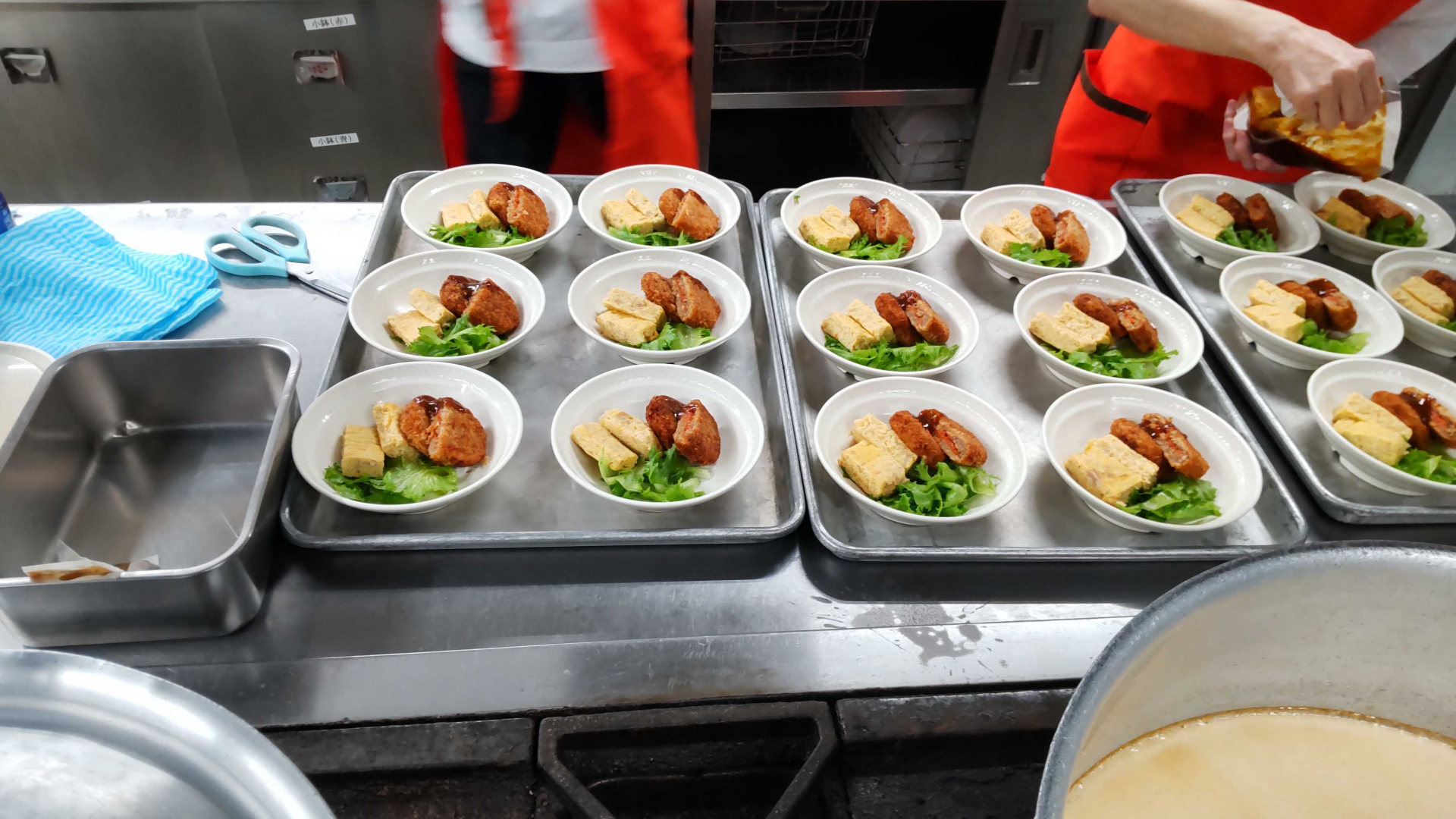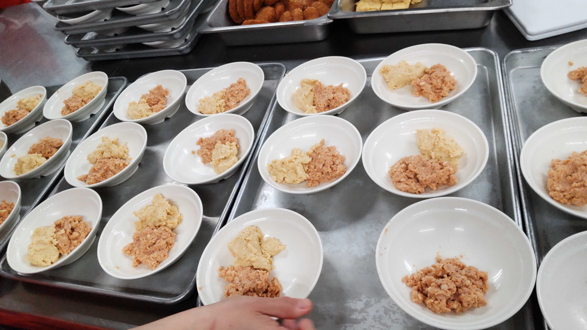 入所者の数が当施設の3倍程あり、昼はデイサービスの方の食事もあるのでかなりの食数を作っていました。