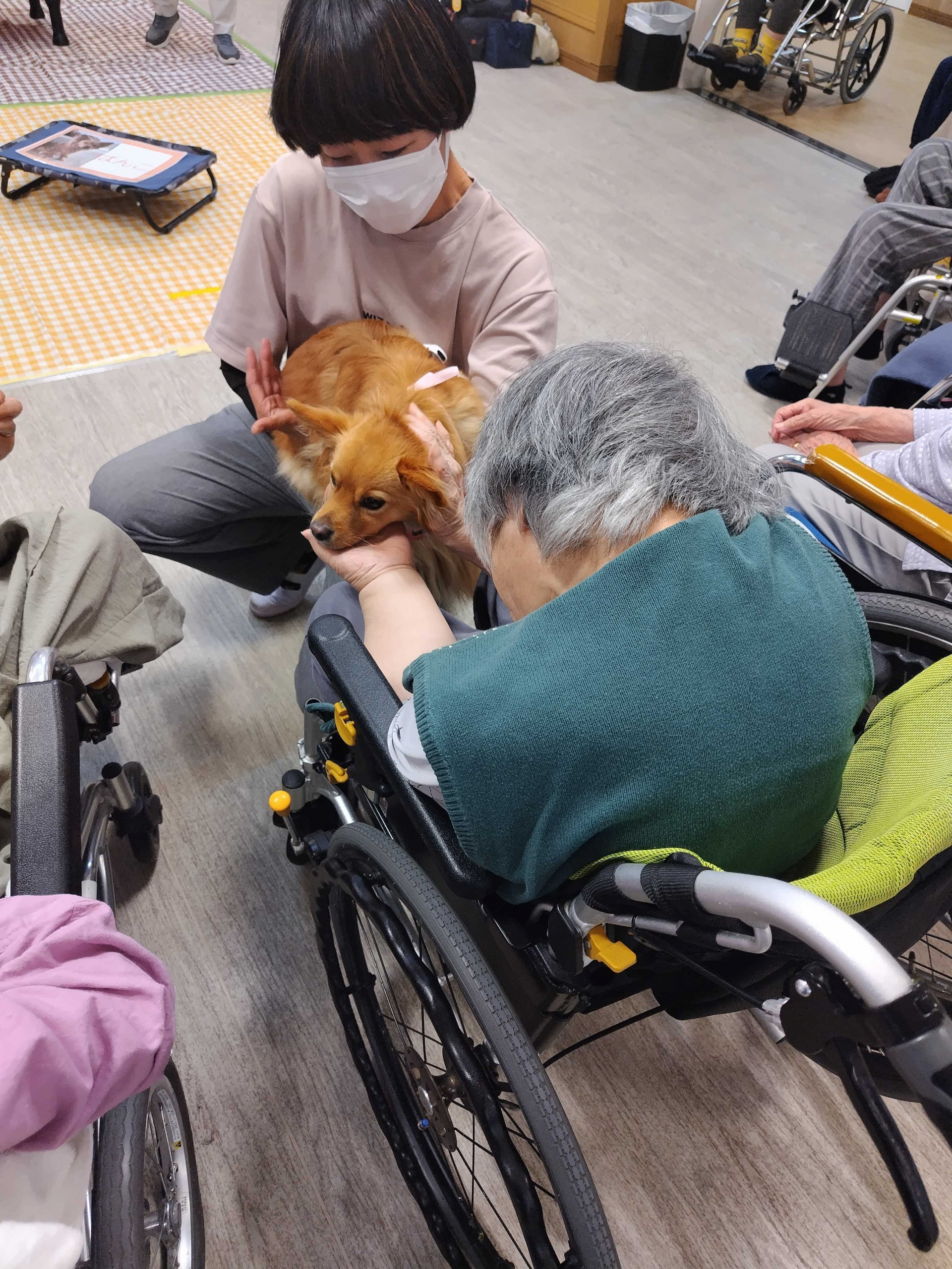 普段あまり表情の変わらない利用者様も犬に触れた瞬間に笑顔を見せてくれたり…