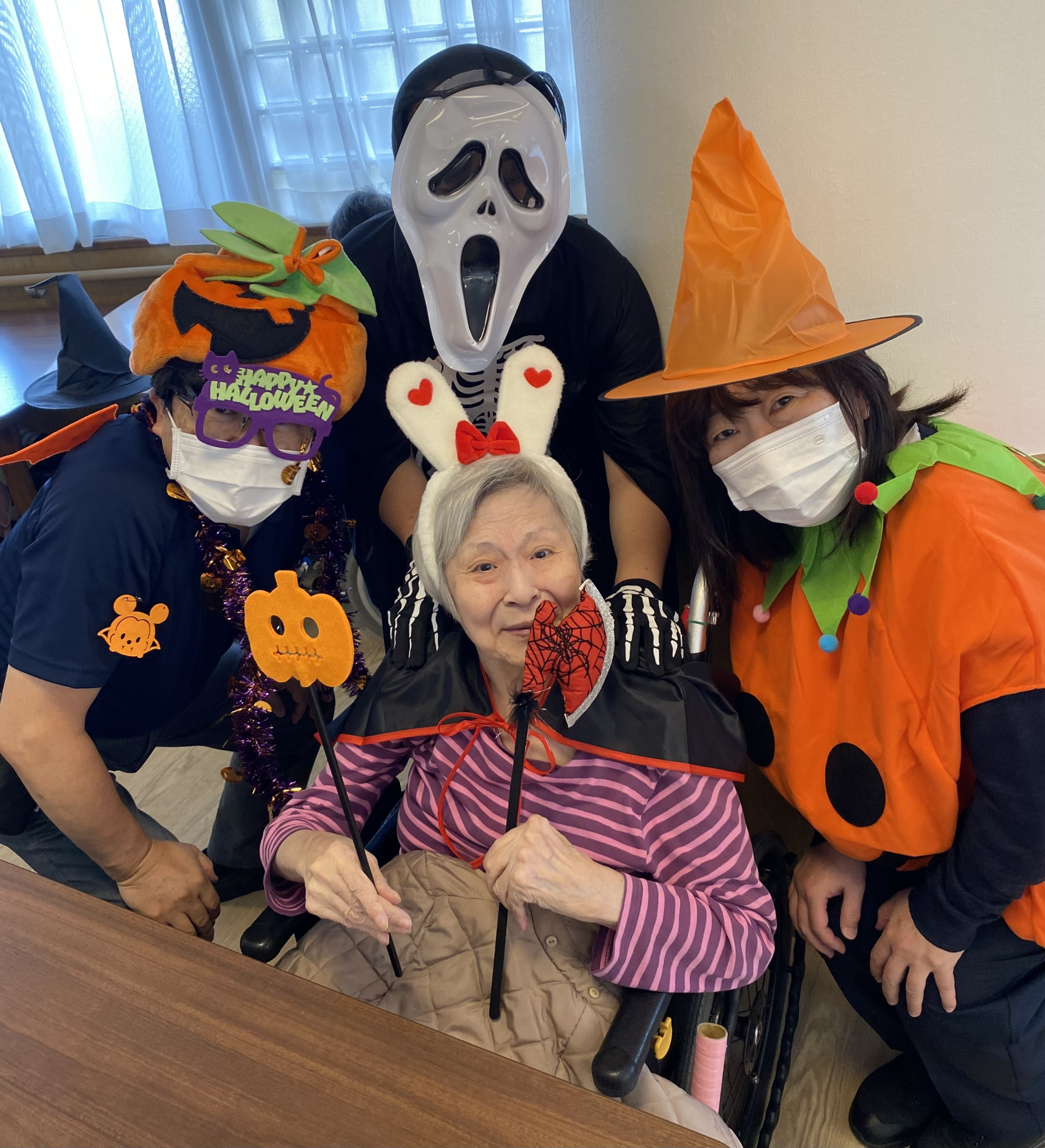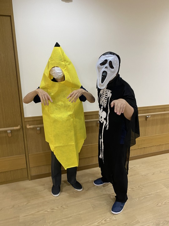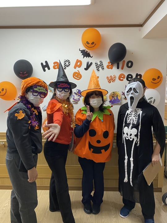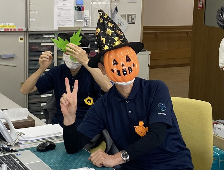 職員も利用者の方々も、少しだけ仮装をしてハロウィン気分を楽しみます🎃