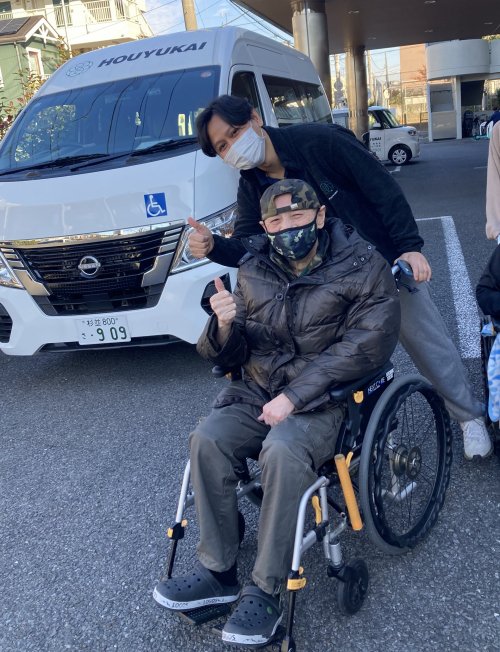 やさしい声で歌ってくれるY職員に集まったご利用者も聴き入ってます。