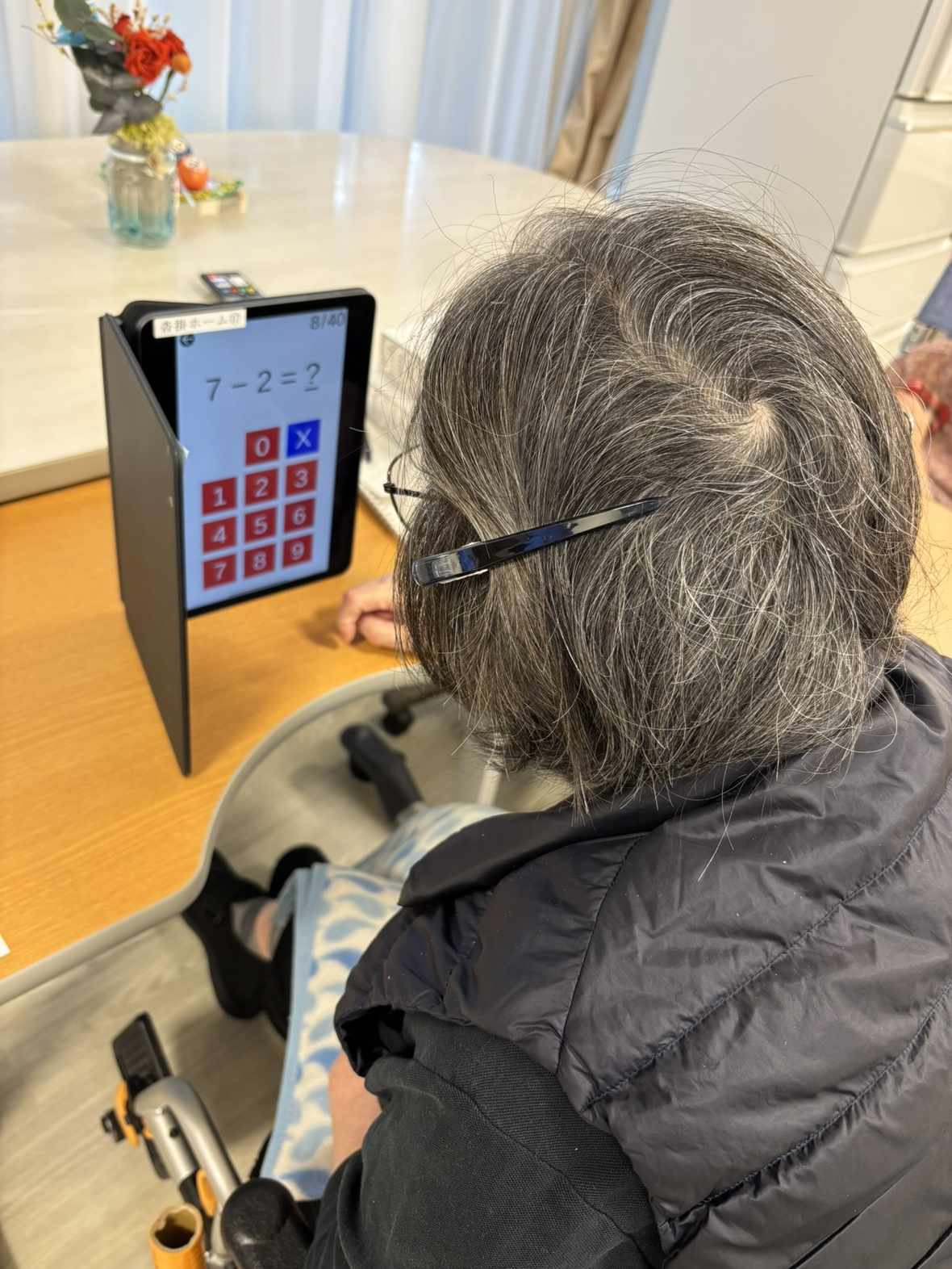 昼下がりの時間になるとおやつなど召し上がり少し時間があるので、本日はiPadを活用し脳トレをしていただきました。