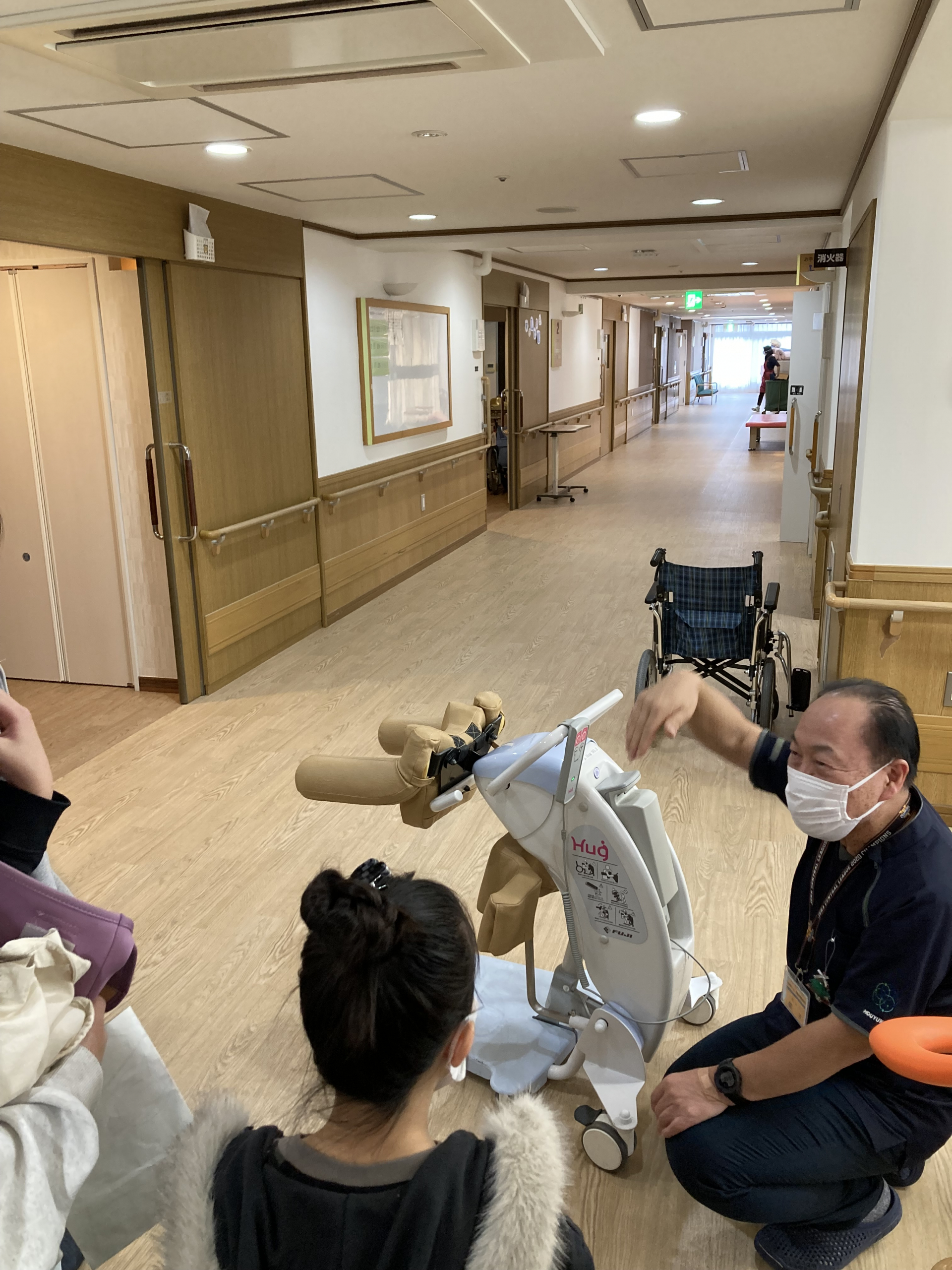 今回の体験では、施設で使用している介護ロボット「HUG」を実際に触れて学んだほか、利用者の皆さまと交流する時間もあり、終始にぎやかで温かな雰囲気に包まれました。