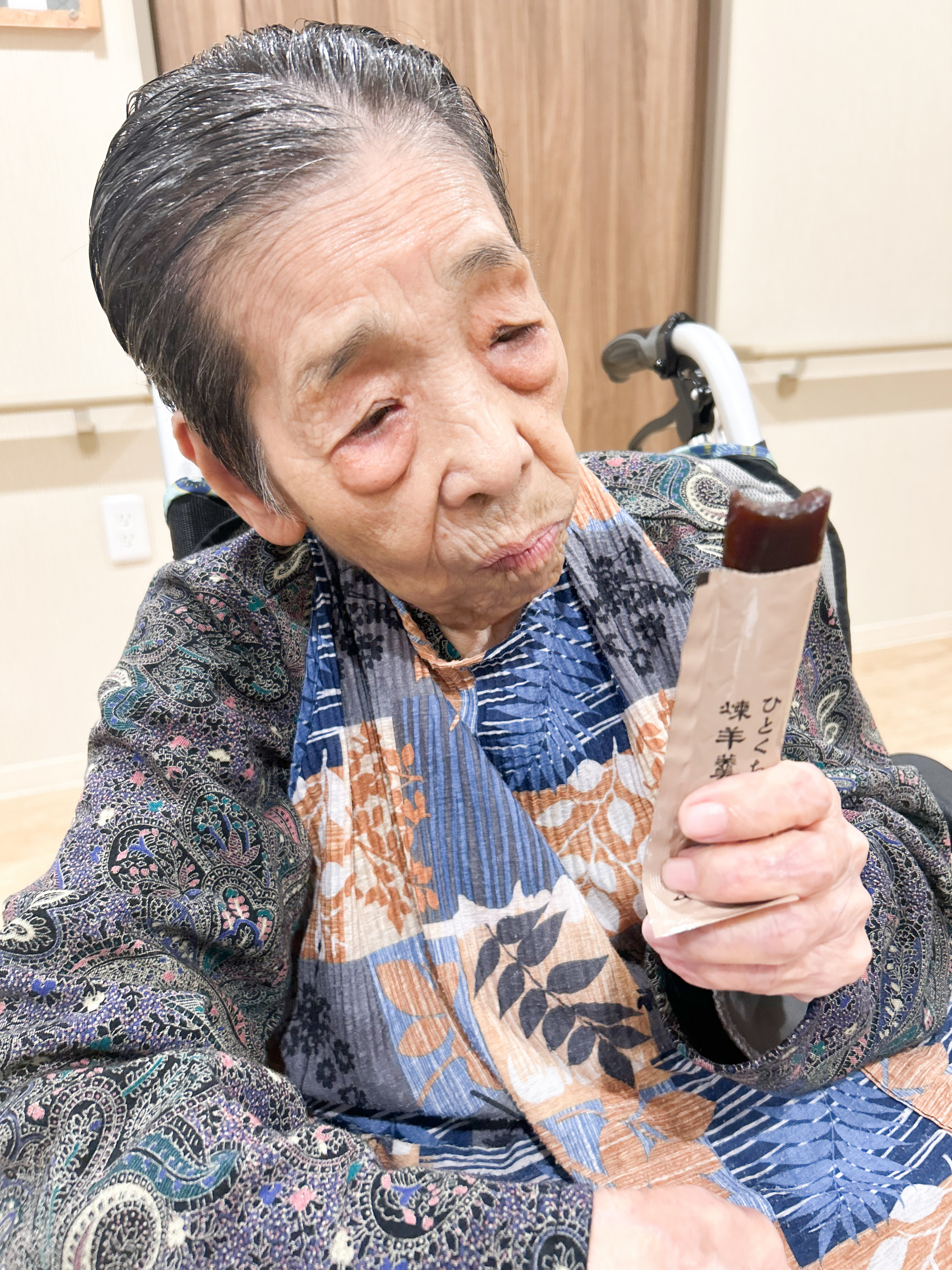 「これなんですか??」と職員に聞かれ「お家で召し上がっていた羊羹だそうです!」とお伝えすると