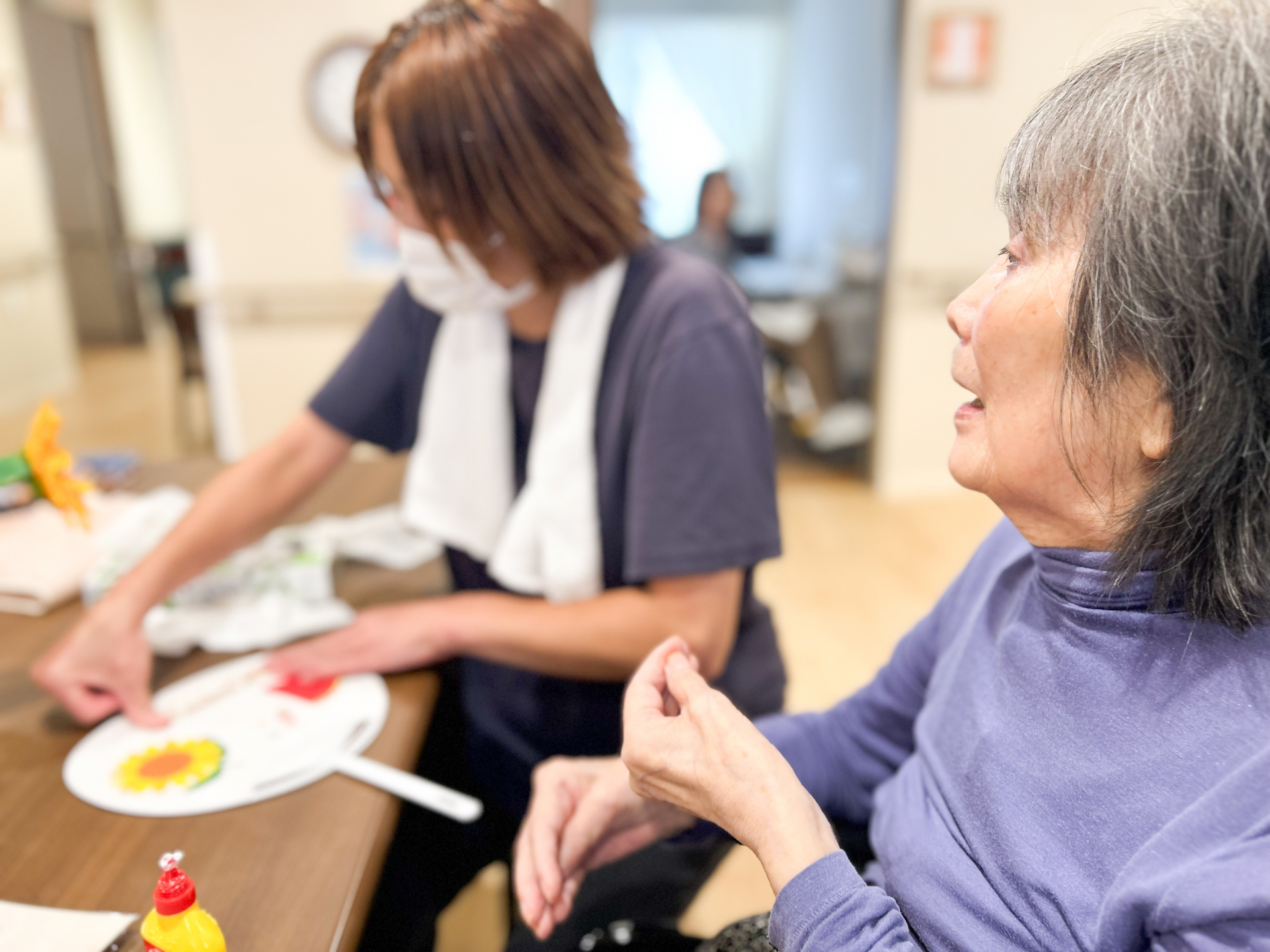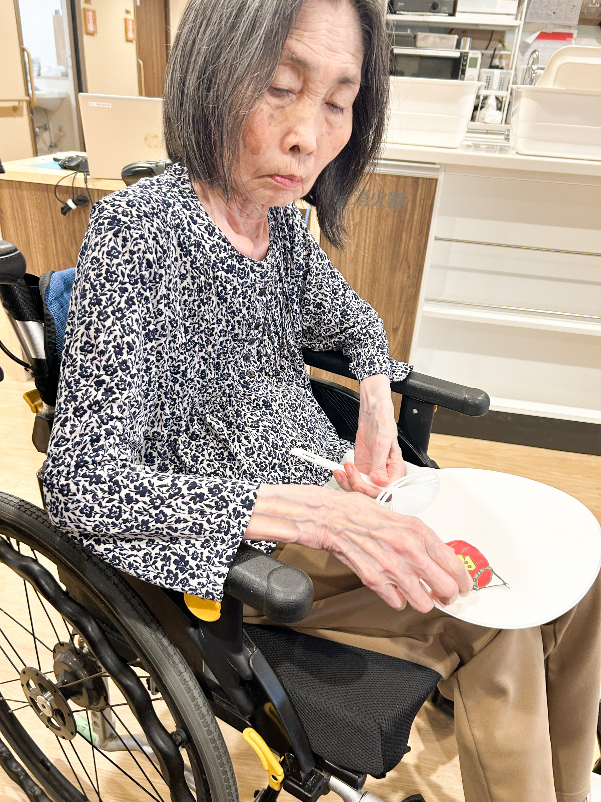 2Eのご入居者様は皆様、うちわづくりを楽しんでくださり