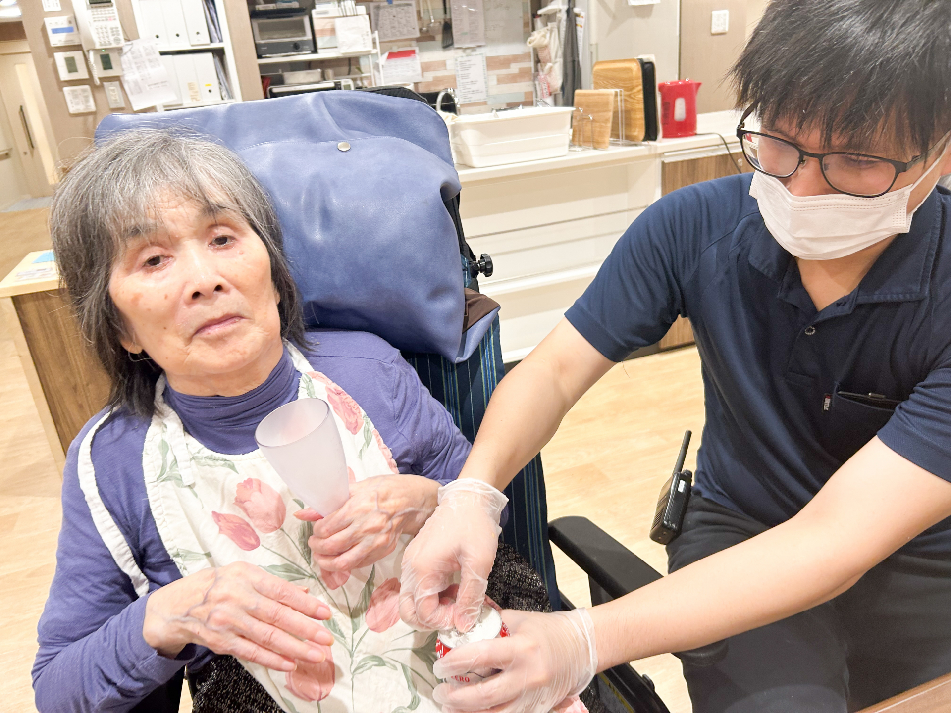 そうですよ!ご家族様が持ってきてくださりましたよとお話すると「あら、そうなんですか。飲みたい」と!
