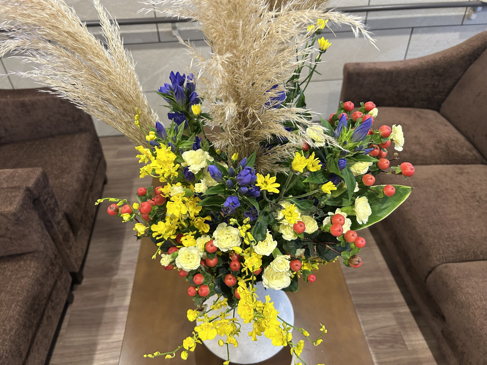お花は見るだけで季節を感じますね!ご利用者様も見て秋を感じていただけると嬉しいです。
