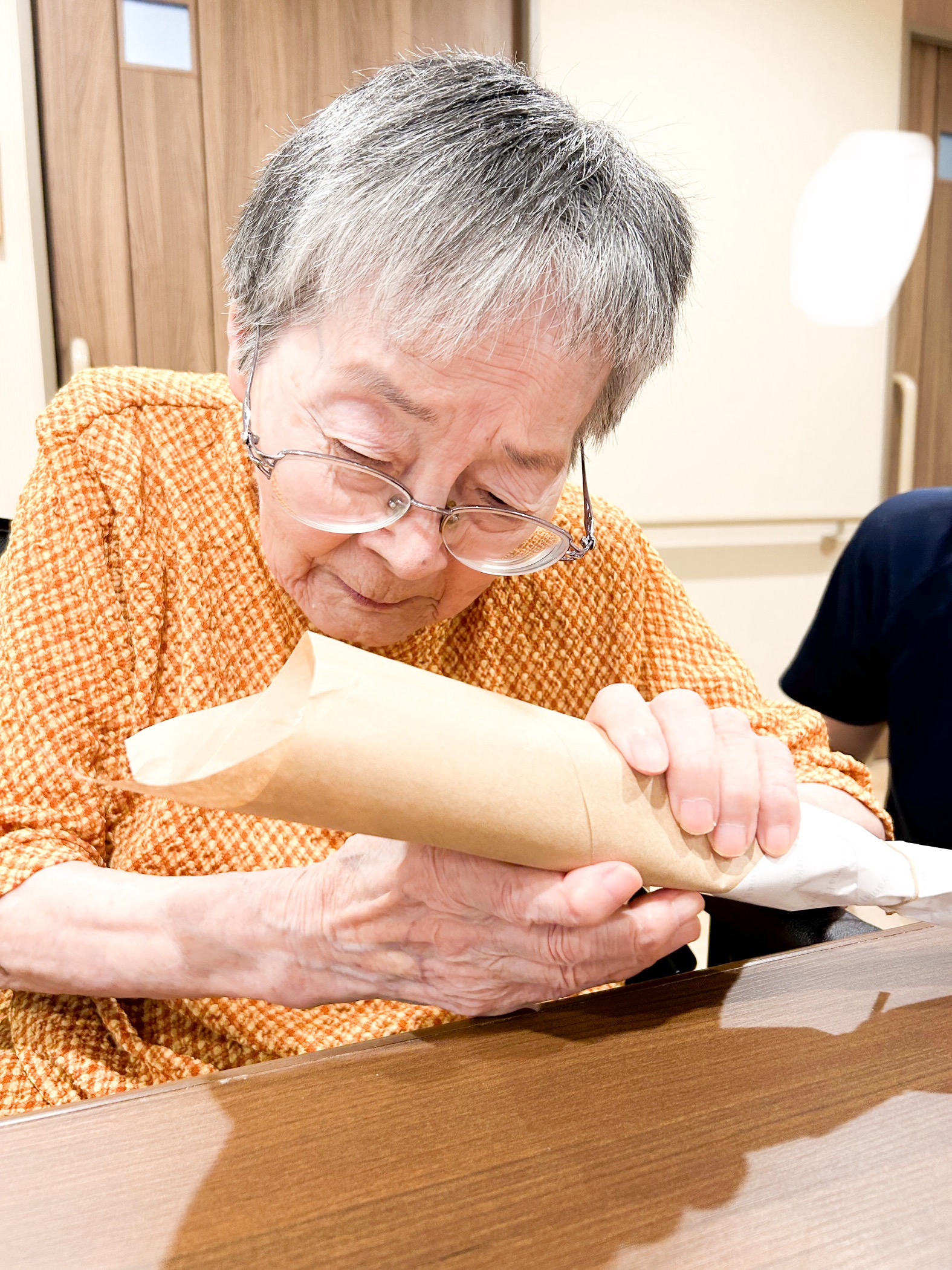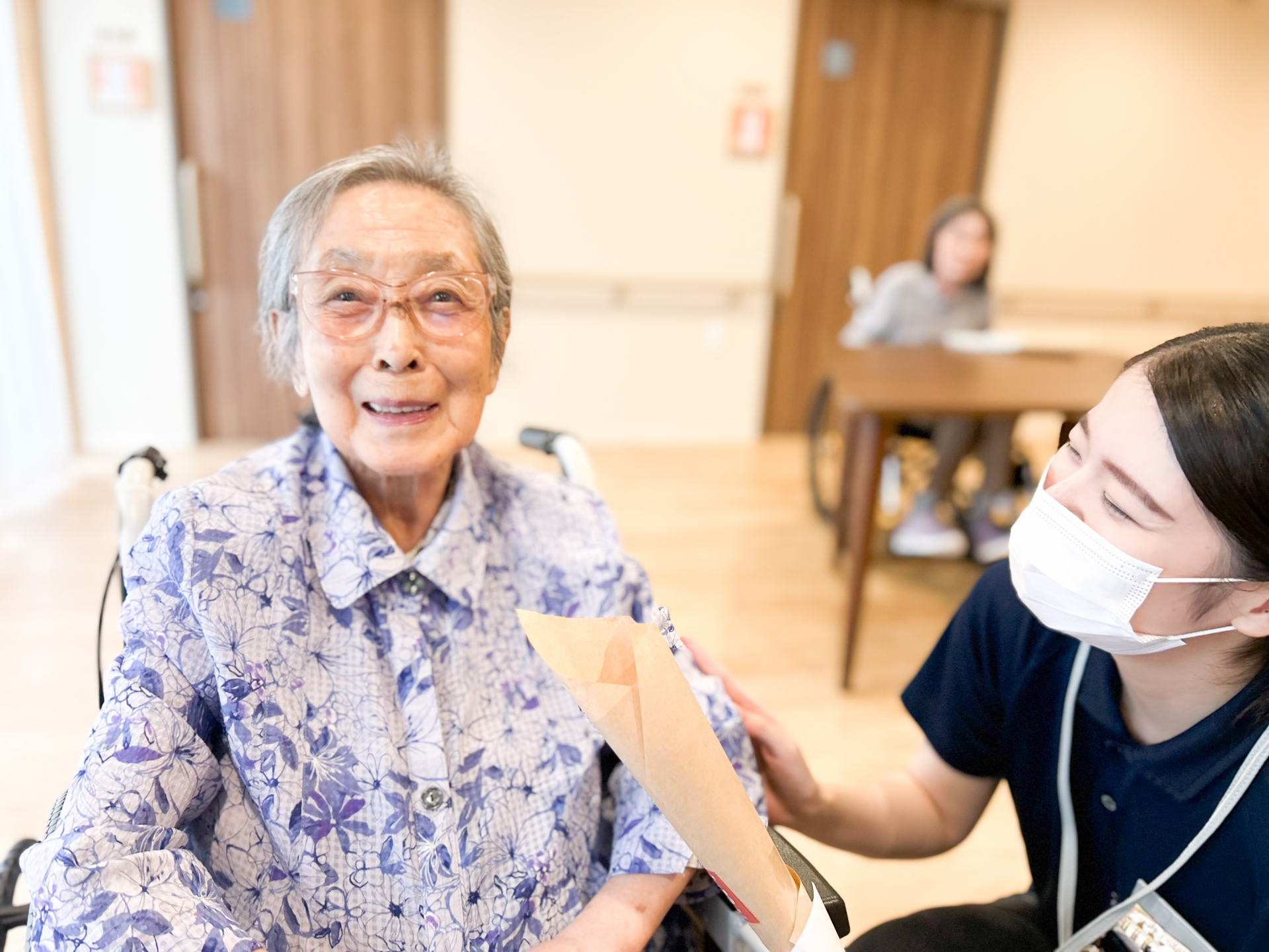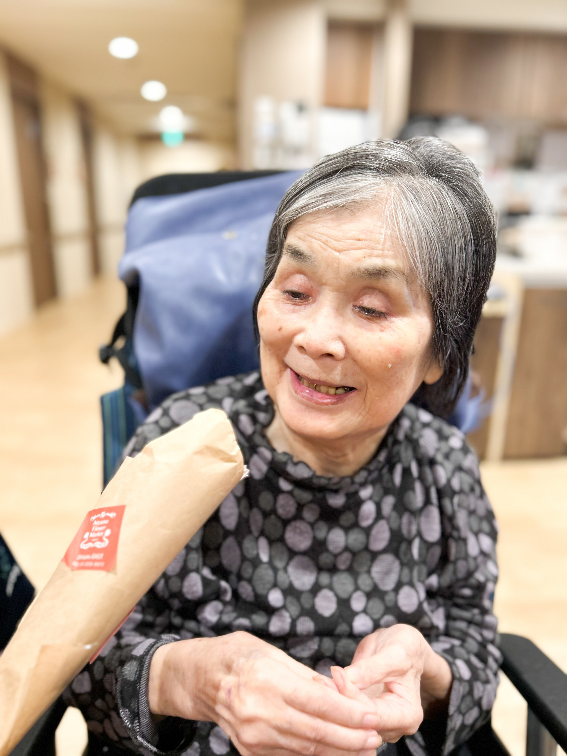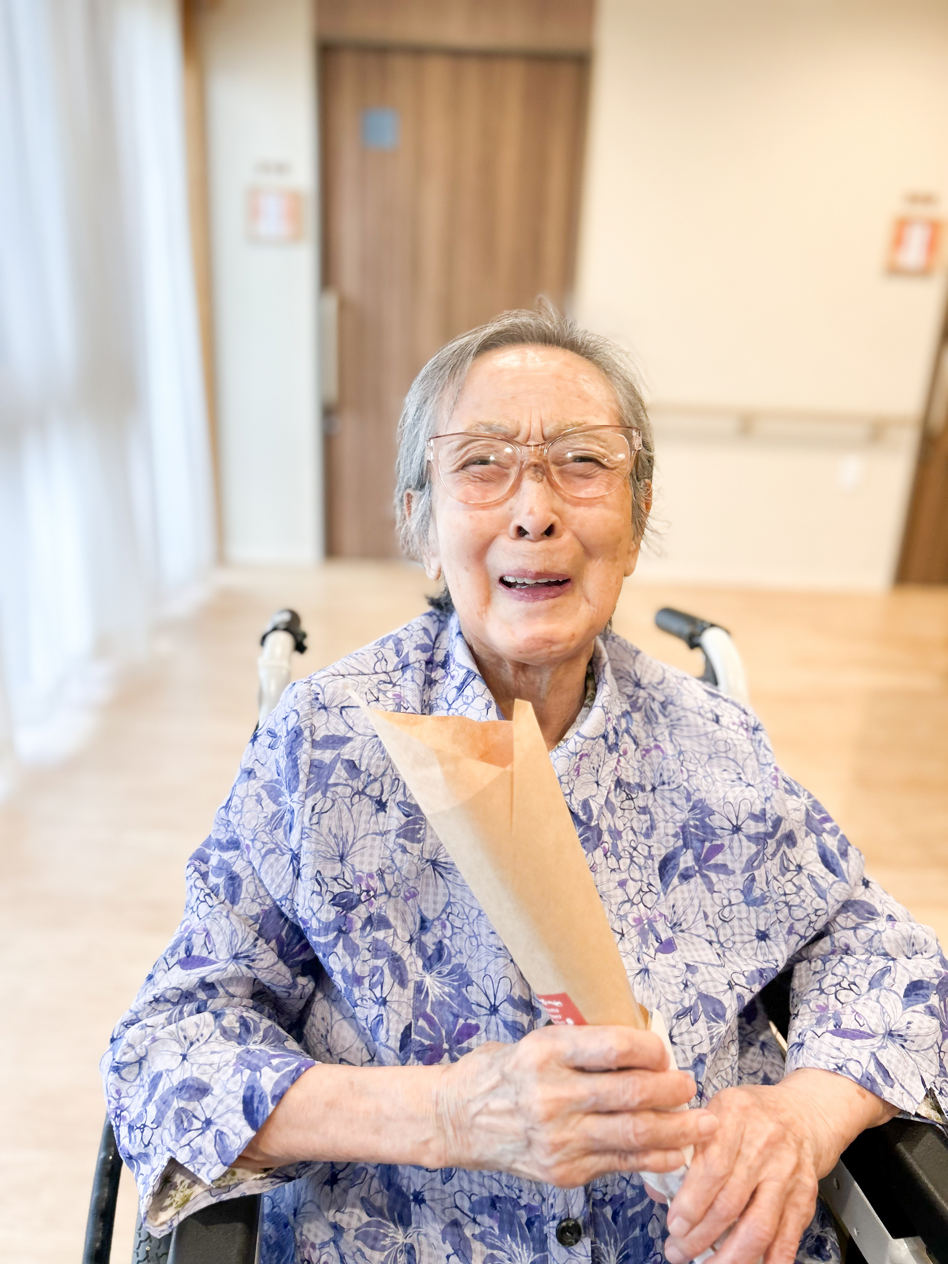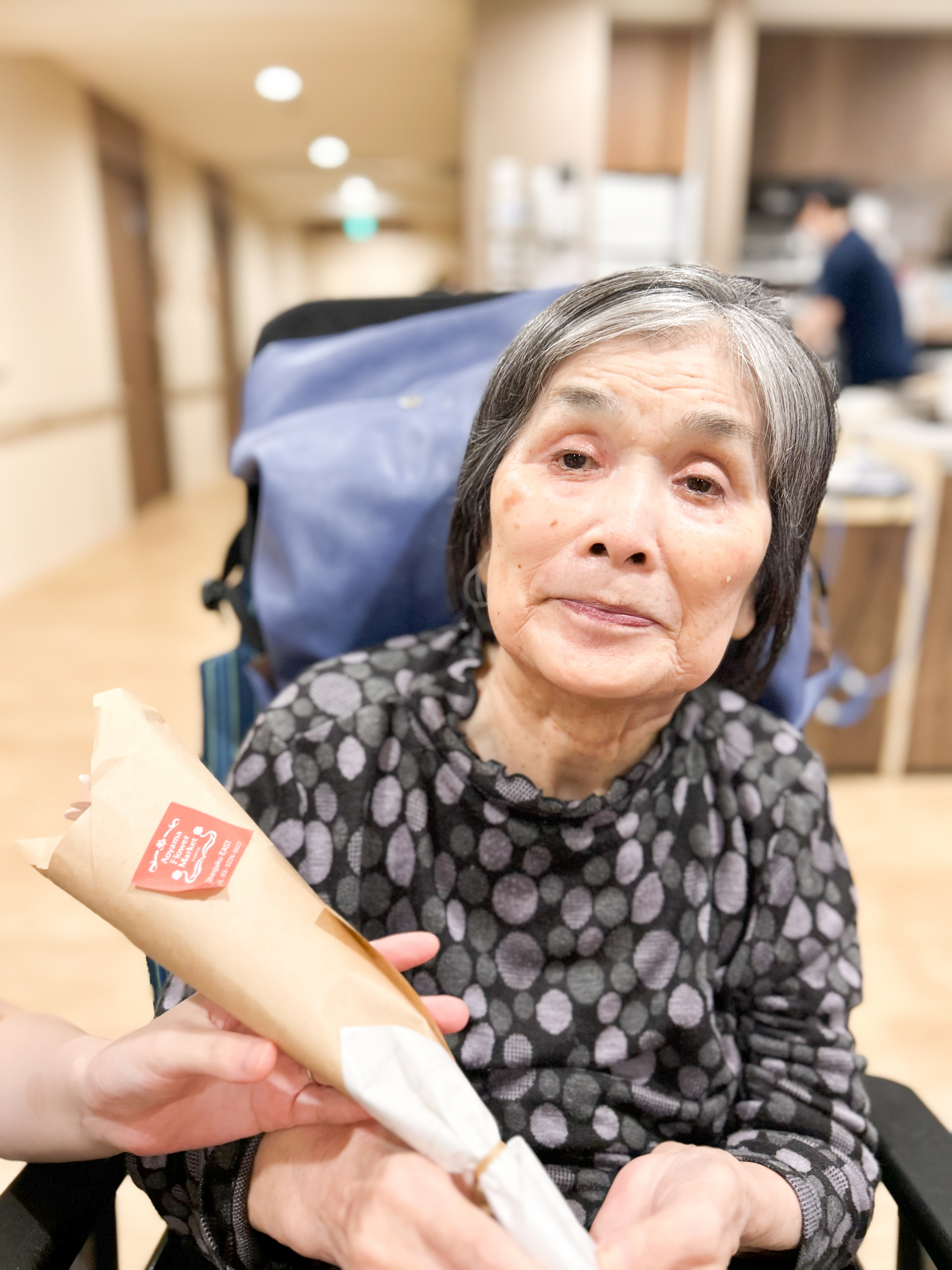 「あら、いい香りがするね、これくれるの?ありがとう!」と嬉しそうに優しい声でお話してくださいました(*^^*)
