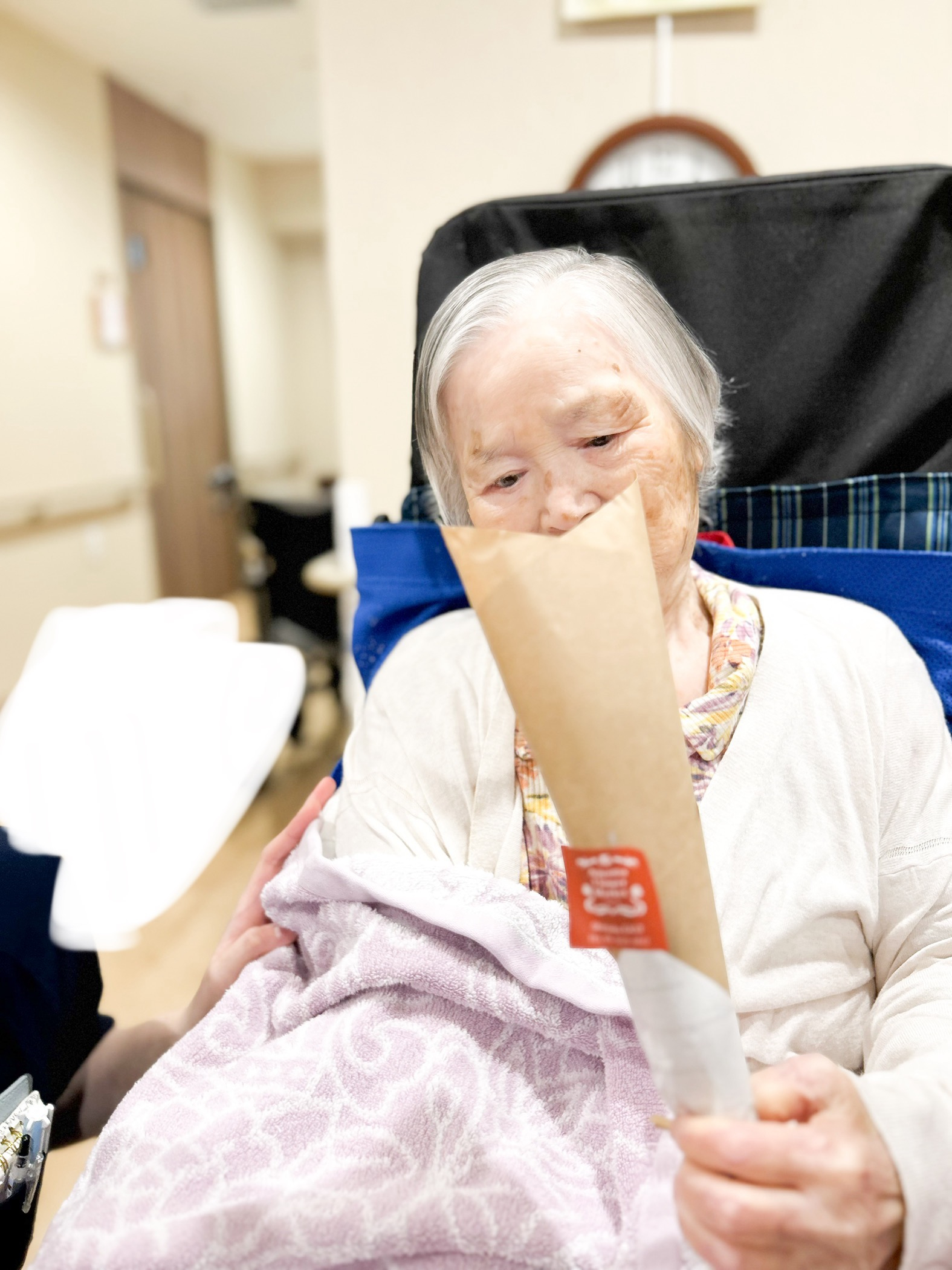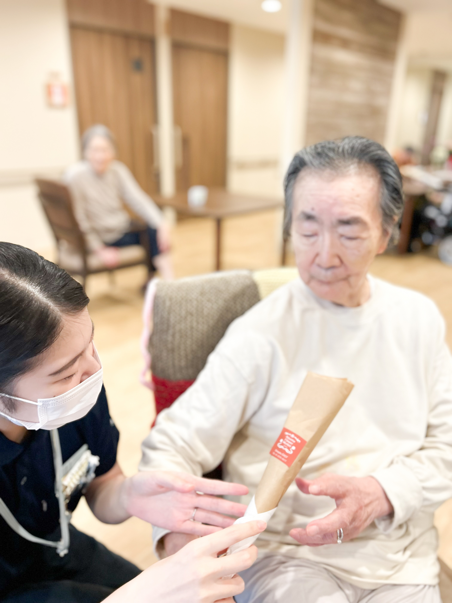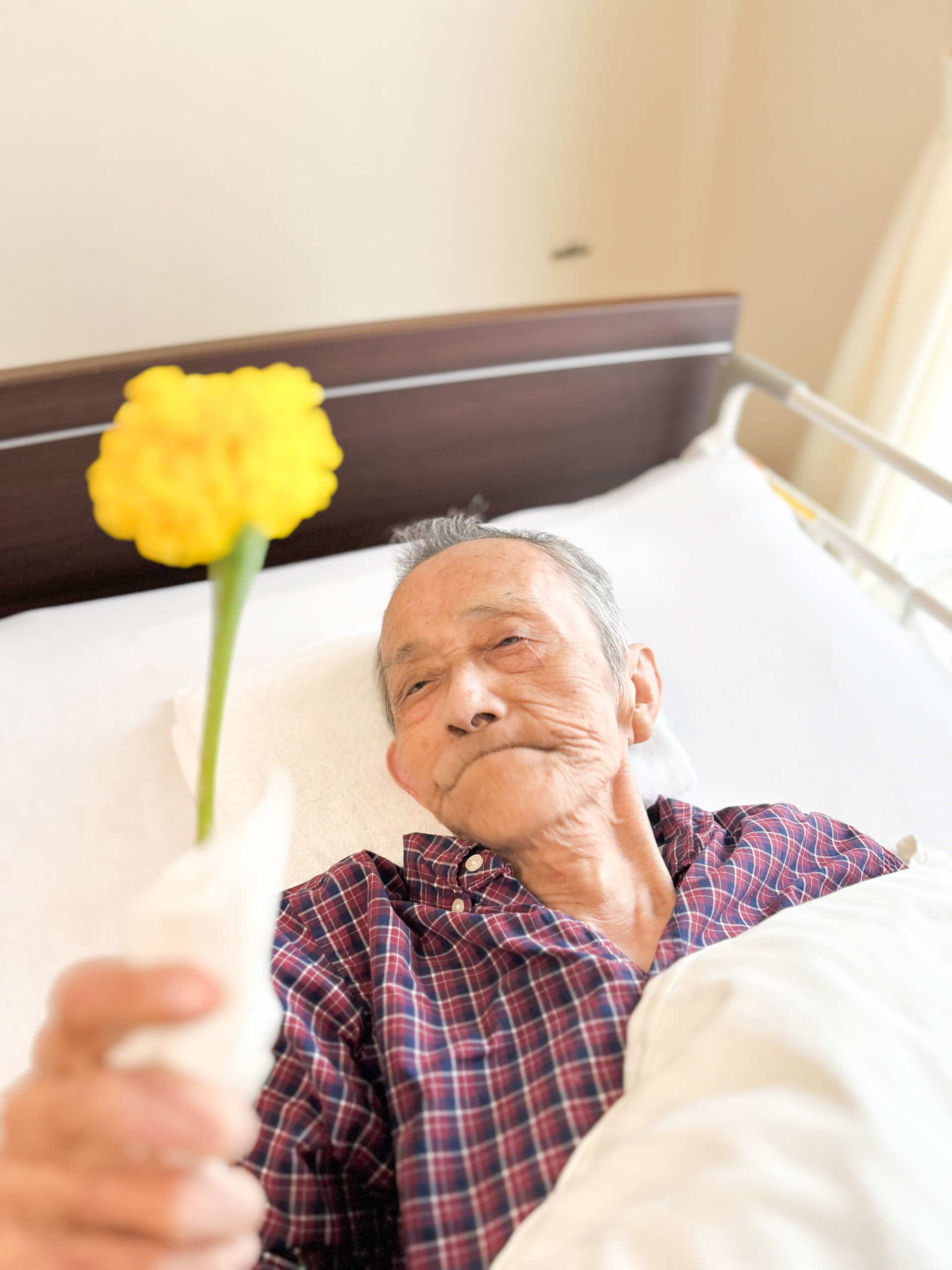 「お花??くれるの?」と職員から受け取り笑顔を見せて下さったりしました(*^^*)
